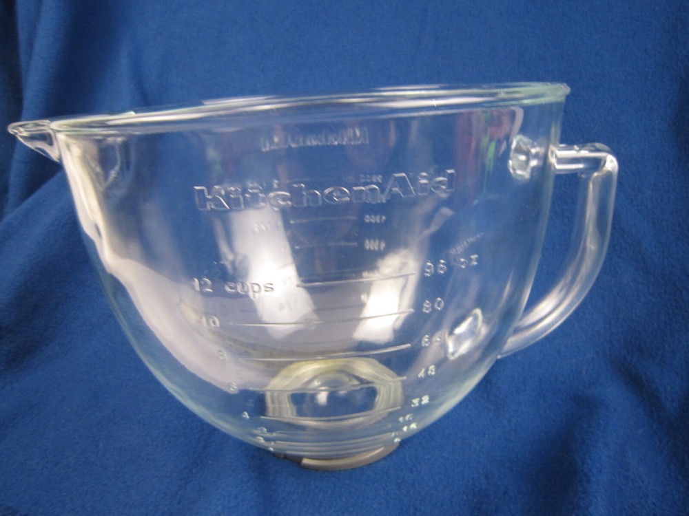 KitchenAid Glass Pour Mixing Bowl Cups 96OZ For Tilt Head Mixer W10220977-No Lid ***MAKE SURE YOU ARE BUYING THE CORRECT BOWL FOR YOUR MACHINE*** ***NO LID INCLUDED*** ***Good used condition, some minor scratches and scuffs, bowl only - NO LID INCLUDED Review the pictures carefully & read full description please! Please take the time to examine the pics before buying or bidding. We always try to post the clearest pictures possible. What you see in the pictures is the actual item for sale. If you have any questions or need further pictures of an item, please contact me. SHIPPING Item ships from Pembina, North Dakota via United States Postal Service or United Parcel Service (UPS). After payment; Item will be shipped within 2 business days, unless weather prevents travel :) PRODUCT RETURNS Any concerns or questions, please contact me and I will do my best to resolve! Please contact me before initiating a return. I accept returns, but buyer is responsible for return shipping costs. The same item ordered would need to be returned in the condition it was shipped out. Serial numbers and security features will be verified before a refund is issued. Thank you for looking. I hope you find an item that brings you joy and rekindles great memories.