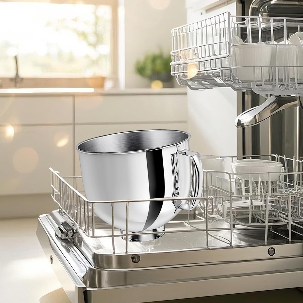 Elevate your baking experience with our 5-Quart Stainless Steel Mixer Bowl designed specifically for KitchenAid Tilt-Head Stand Mixers. Crafted from premium food-grade 304 stainless steel, this bowl offers a perfect blend of durability and functionality, making it an essential addition to your kitchen. Its large capacity allows you to mix ample amounts of dough and batter without the fear of spills. Equipped with a comfortable round handle, this bowl is easy to attach, carry, and clean, ensuring a seamless mixing process. Whether you're a seasoned baker or just starting, this mixer bowl will help you create delicious treats effortlessly. Elevate your baking experience with our 5-Quart Stainless Steel Mixer Bowl designed specifically for KitchenAid Tilt-Head Stand Mixers. Product Description: Elevate your KitchenAid mixer’s versatility with the 5QT Stainless Steel Mixing Bowl, meticulously designed to meet the demands of home bakers, cooking enthusiasts, and professional chefs. Engineered as a direct for KitchenAid Artisan (KSM150) and Classic Series mixers, this robust stainless steel mixing bowl combines durability, functionality, and style. Key Features: 1.Precision Compatibility: Fits all 4.5-5 QT tilt-head KitchenAid stand mixers, including KSM150, KSM55, KSM75, and Artisan models, ensuring a snug fit for stable mixing and kneading. 2.Unmatched Durability: Made from commercial-grade stainless steel, this KitchenAid mixer bowl withstands heavy daily use without warping or discoloration. 3.User-Centric Design: The ergonomic handle and wide rim simplify pouring batters or transferring dough, while the 5-quart capacity handles everything from small batches to family-sized recipes. Ideal for Every Kitchen Need Whether you’re crafting artisan bread, whipping up birthday cakes, or preparing weekly meal prep, this bowl for KitchenAid 5-quart mixers streamlines your workflow. Its scratch-resistant surface ensures it stays pristine even when used with metal utensils or KitchenAid stand mixer accessories. Why Buy ? 1.Guaranteed Fit: Rigorously tested to match the dimensions of original KitchenAid bowls for stand mixers, ensuring no slippage or alignment issues. 2.Easy Maintenance: Dishwasher-safe for quick cleanup, making it a hygienic choice for busy kitchens. 3.Cost-Effective Upgrade: A budget-friendly alternative to pricey OEM KitchenAid mixing bowls, without compromising quality. Compatibility Note: Designed for KitchenAid Artisan stand mixer (KSM150/KSM155) and Classic Series tilt-head models. Not compatible with bowl-lift designs (e.g., Pro Line Series). Upgrade your culinary toolkit with 's 5QT mixing bowl—crafted to empower your creativity and durability in every mix! Applicable Models: bowl for kitchenaid mixer are not only compatible with popular models such as K45,K45SS,KSM150PS,KSM150PSBK, but also with KSM75, KSM90, KSM95, KSM100, KSM103, KSM110 etc. and for most from 4.5QT to 5QT Artisan & Classic Series Tilt-Head Mixers.(Not Fit Bowl Lift and Artisan Mini Series!) Durable and Functional Design: Our bowls for kitchenaid stand mixer is crafted from premium food-grade 304 stainless steel, ensuring a long-lasting bowl for kitchen aid that withstands the rigors of daily use. This mixing bowl combines durability with functionality, making it an essential accessory. Ample Mixing Capacity: With a generous capacity of 5 quarts, this mixing bowl allows you to mix large batches of dough and batter without worrying about spills, perfect for both novice bakers and seasoned chefs looking for a reliable mixer bowl. Comfortable Handle for Easy Use: Designed with a comfortable and ergonomic handle design, this 5-Quart Stainless Steel Mixer Bowl is easy to attach and carry, providing a seamless experience while using your stand mixer. Say goodbye to struggles with cumbersome bowls and enjoy effortless mixing! Scratch-Resistant & Easy to Clean: The polished stainless steel finish not only enhances the aesthetic appeal but also provides a scratch-resistant surface, ensuring that your accessories and attachments remain in pristine condition. Cleaning is a breeze, allowing you more time to focus on baking.
