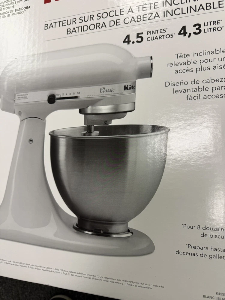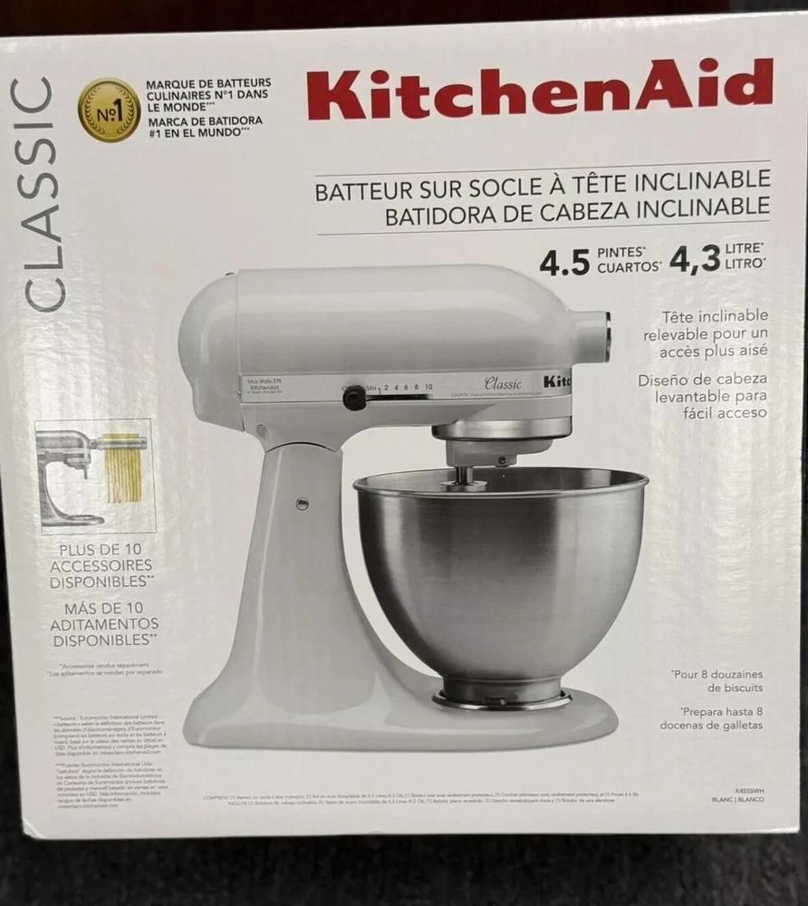 KitchenAid Classic stand mixer White/Blanco Comes with 3 attachments New, sealed