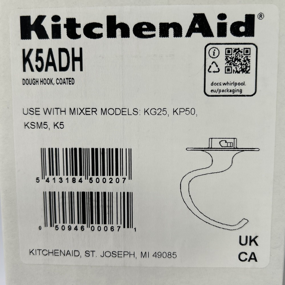 This KitchenAid Dough Hook K5ADH is a must-have for any home baker. It is designed to make your baking experience easier and more efficient. The hook is made of high-quality materials that ensure durability and longevity. With its sleek white color and compact design, it will fit perfectly in your kitchen. This dough hook is specifically designed for KitchenAid mixers and is perfect for making dough. It is easy to use and comes with a single item. Get your hands on this KitchenAid Dough Hook K5ADH today and enjoy perfect dough every time!