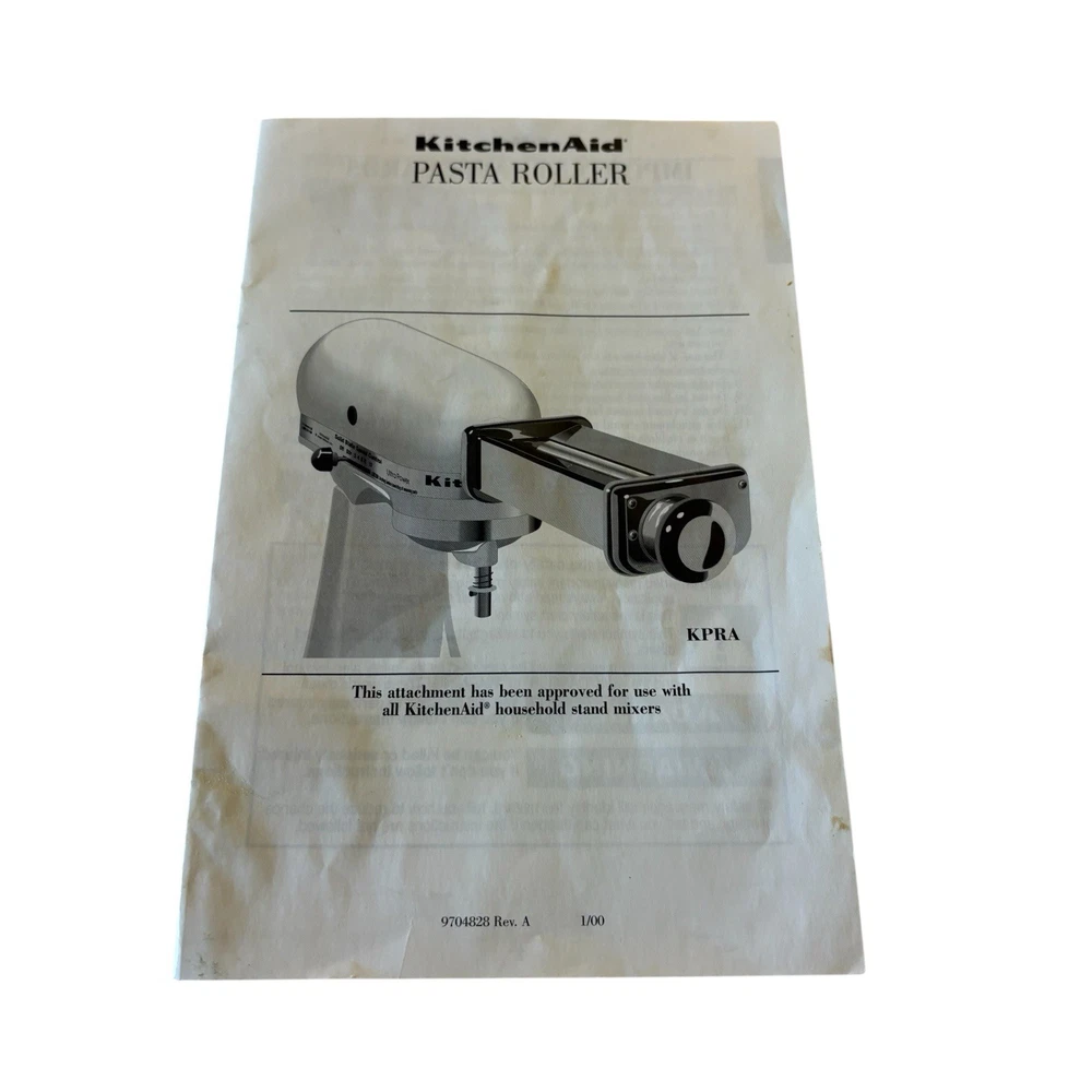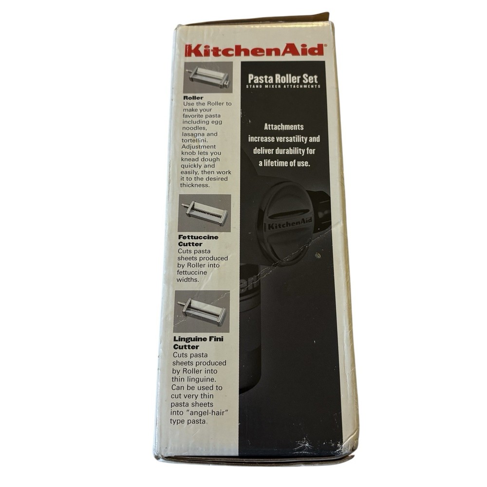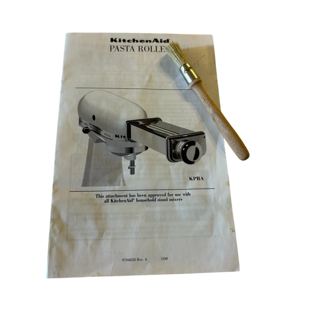 The KitchenAid Pasta Roller Set Stand Mixer Attachments Model KPRA is a high-quality pasta maker set designed for use with KitchenAid stand mixers. Made of durable stainless steel, this set includes three essential items for making homemade pasta: a pasta roller, a dough roller, and a pasta sheet roller. The sleek silver color adds a touch of style to your kitchen while the KitchenAid brand ensures reliability and performance. Whether you're a pasta enthusiast or a professional chef, this pasta roller set is a must-have for creating delicious homemade noodles and pasta.