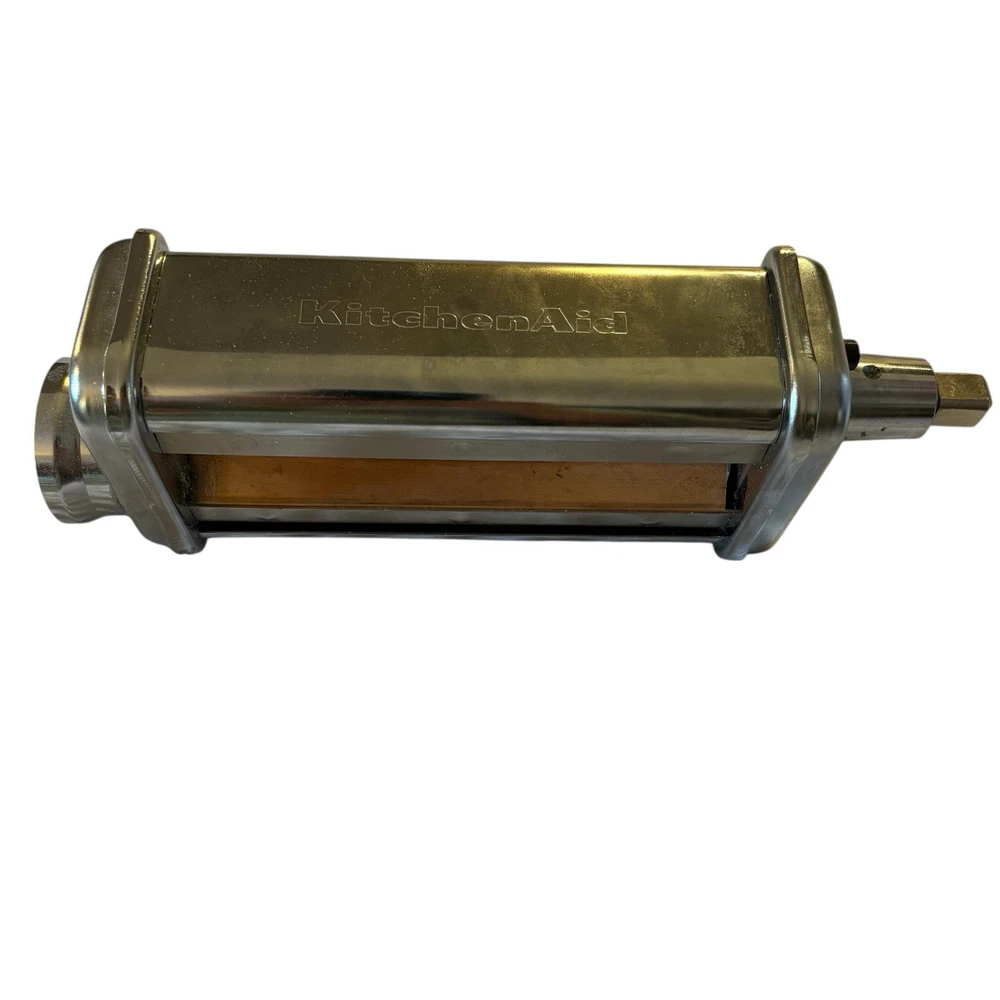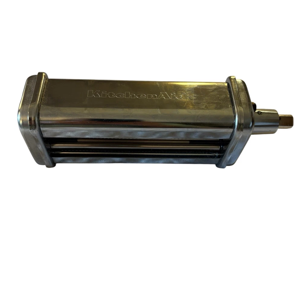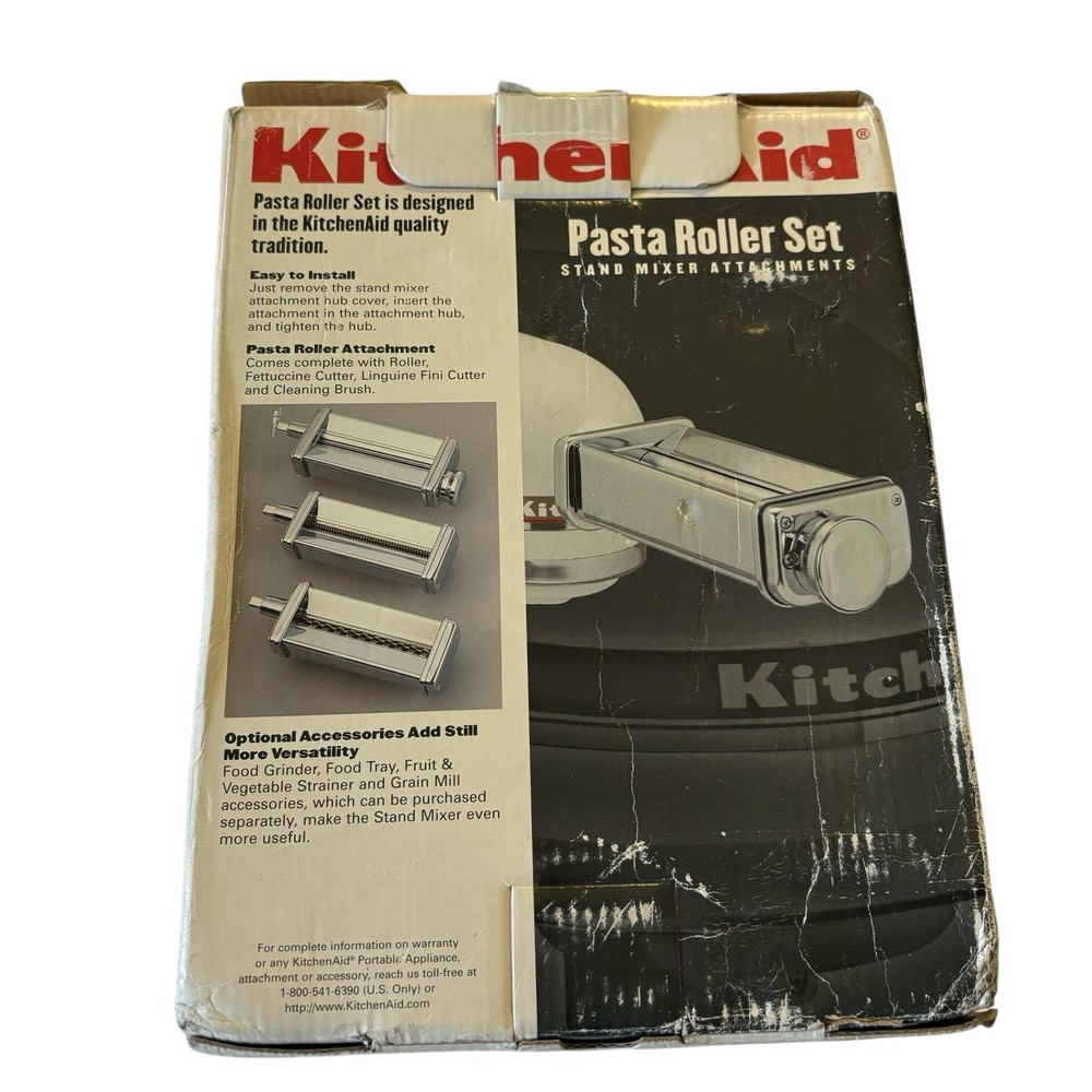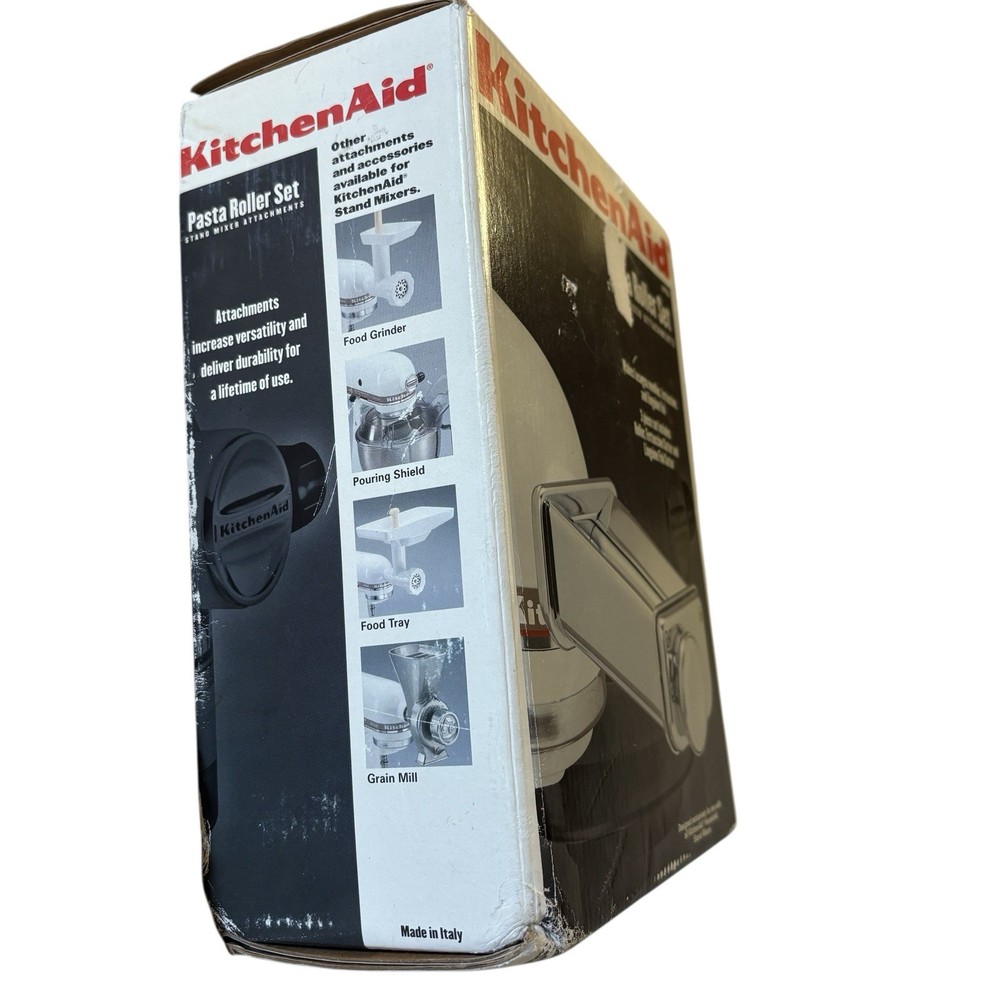 The KitchenAid Pasta Roller Set Stand Mixer Attachments Model KPRA is a high-quality pasta maker set designed for use with KitchenAid stand mixers. Made of durable stainless steel, this set includes three essential items for making homemade pasta: a pasta roller, a dough roller, and a pasta sheet roller. The sleek silver color adds a touch of style to your kitchen while the KitchenAid brand ensures reliability and performance. Whether you're a pasta enthusiast or a professional chef, this pasta roller set is a must-have for creating delicious homemade noodles and pasta.