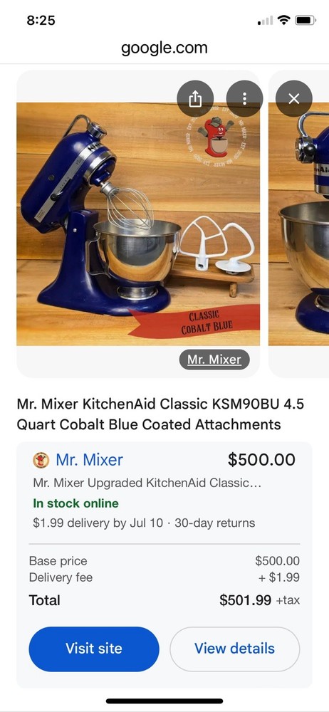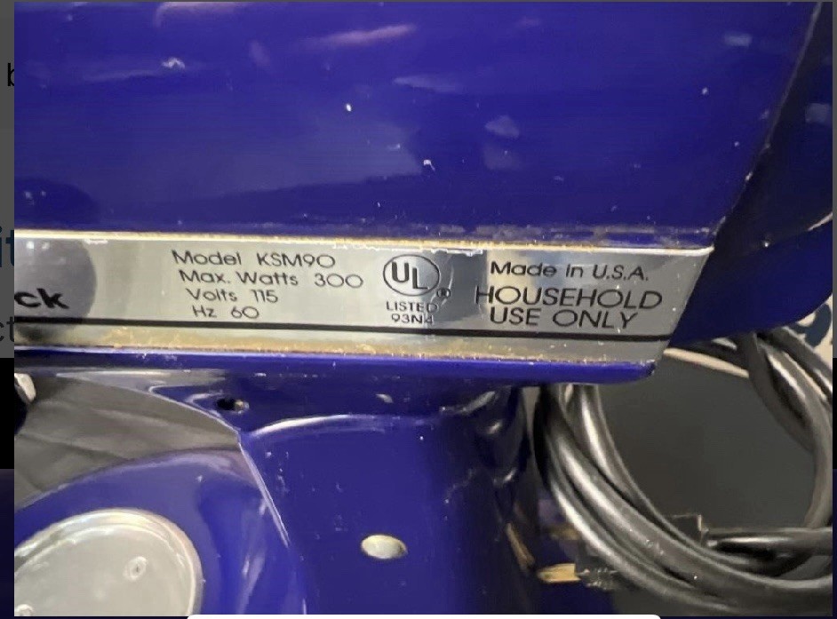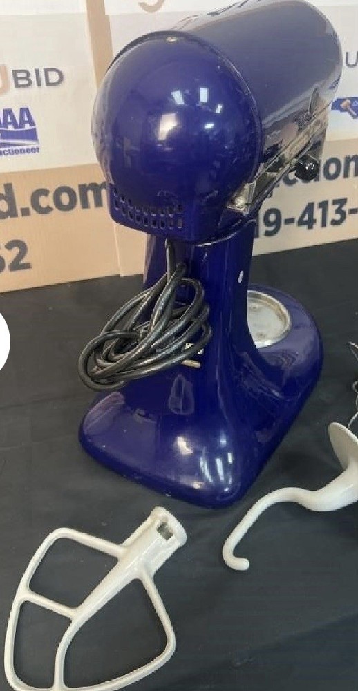The KitchenAid Stand Mixer KSM90 in COBALT BLUE is a powerful 300W electric mixer with 10 different speeds, perfect for mixing, whipping, and kneading tasks in the kitchen. It comes with a 5 qt capacity bowl, a stand, a dough hook, and a beater, making it a versatile appliance for various culinary needs. The mixer is easy to clean and dishwasher-safe, with a glossy finish that adds a touch of style to your kitchen decor. With a voltage of 120V, this KitchenAid stand mixer is a reliable and practical addition to any home cooking setup. Note: new bowl included see pictures