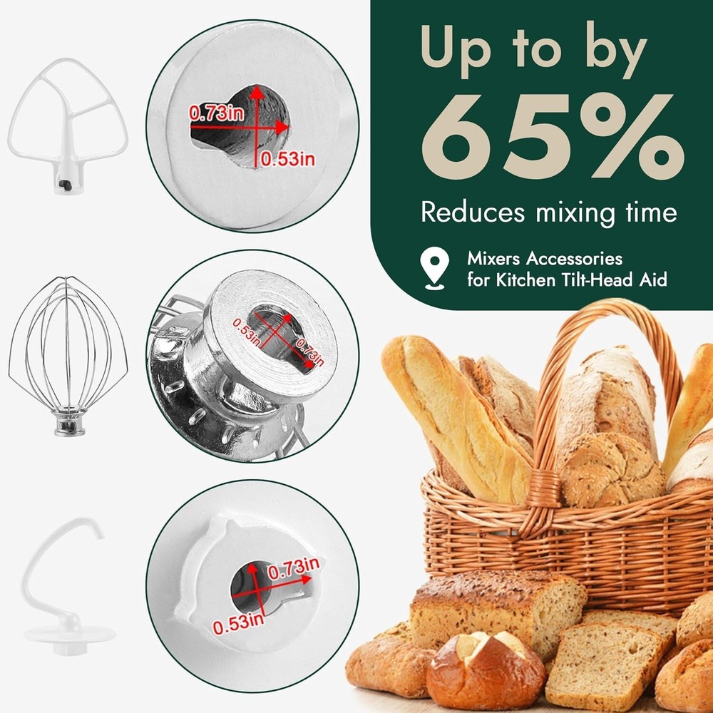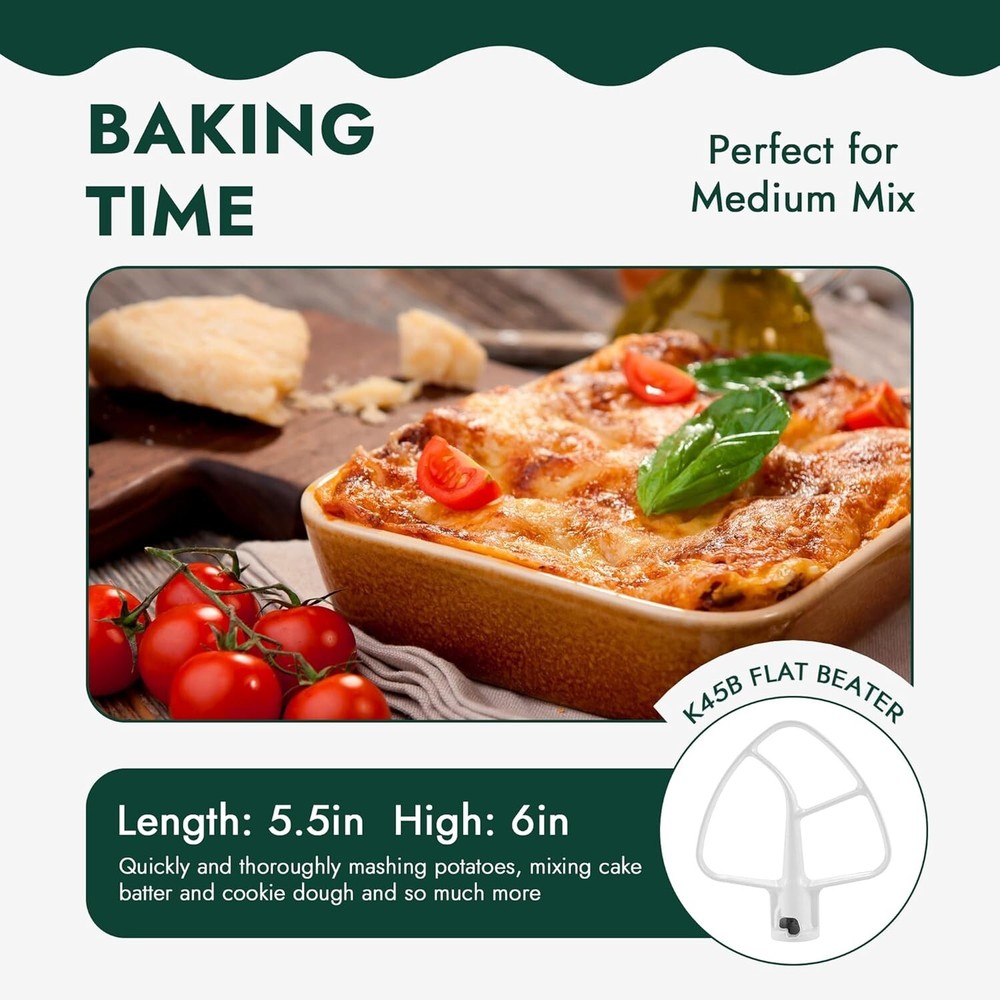 Kitchen aid Mixer Attachments Including K5AB Coated Flat Beater&K5ADH Dough Hook Capacity 4.5 Liters Controls Type Knob Material Type: Aluminum ππ‘ππ'π¬ π’π§ ππ‘π ππ¨π±: 3 piece set of stand mixers,These replacement parts are made of aluminum, stainless steel, manufacturer tested anti-stick nylon coating for long life.1 x K45DH Coated Anti-stick dough hook, 1 x K45WW wire whip and 1 x K45B coated Anti-stickflat beater. For 4.5πΈ Kitchen Tilt-Head Stand Mixers. Not fit Bowl-Lift Stand Mixers ππ’π₯π-ππππ 6-ππ’π«π ππ‘π’π© | Wire Whip's 6-wire whip π45ππ quickly incorporates air into ingredients, creating fluffy whipped cream, perfectly cooked frosting and cakes with whipped egg whites. Fits models KSM155GB, KSM152PS, KSM150PS, KSM95, KSM75 and K45SS. Replace WP9704329, 4162165, 416992, 4176070, 9704329, 9706446, 904973, PS11746928, AP6013701, EAP6013701