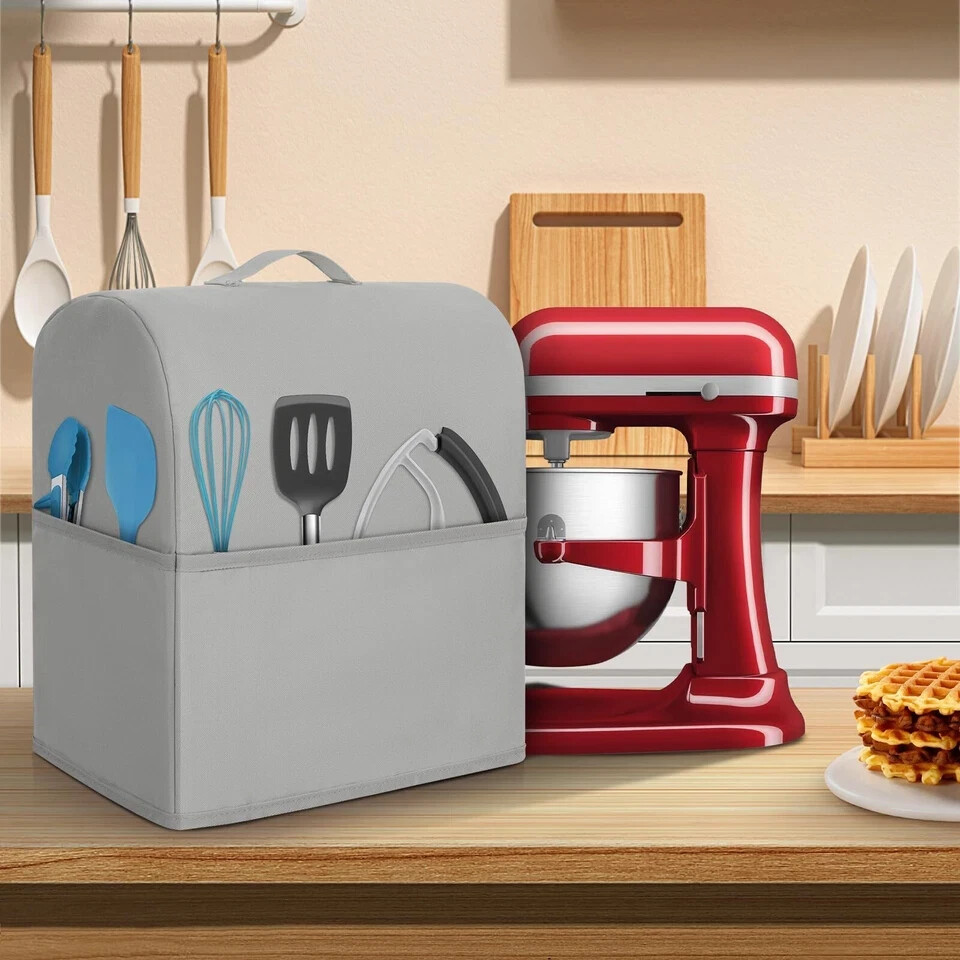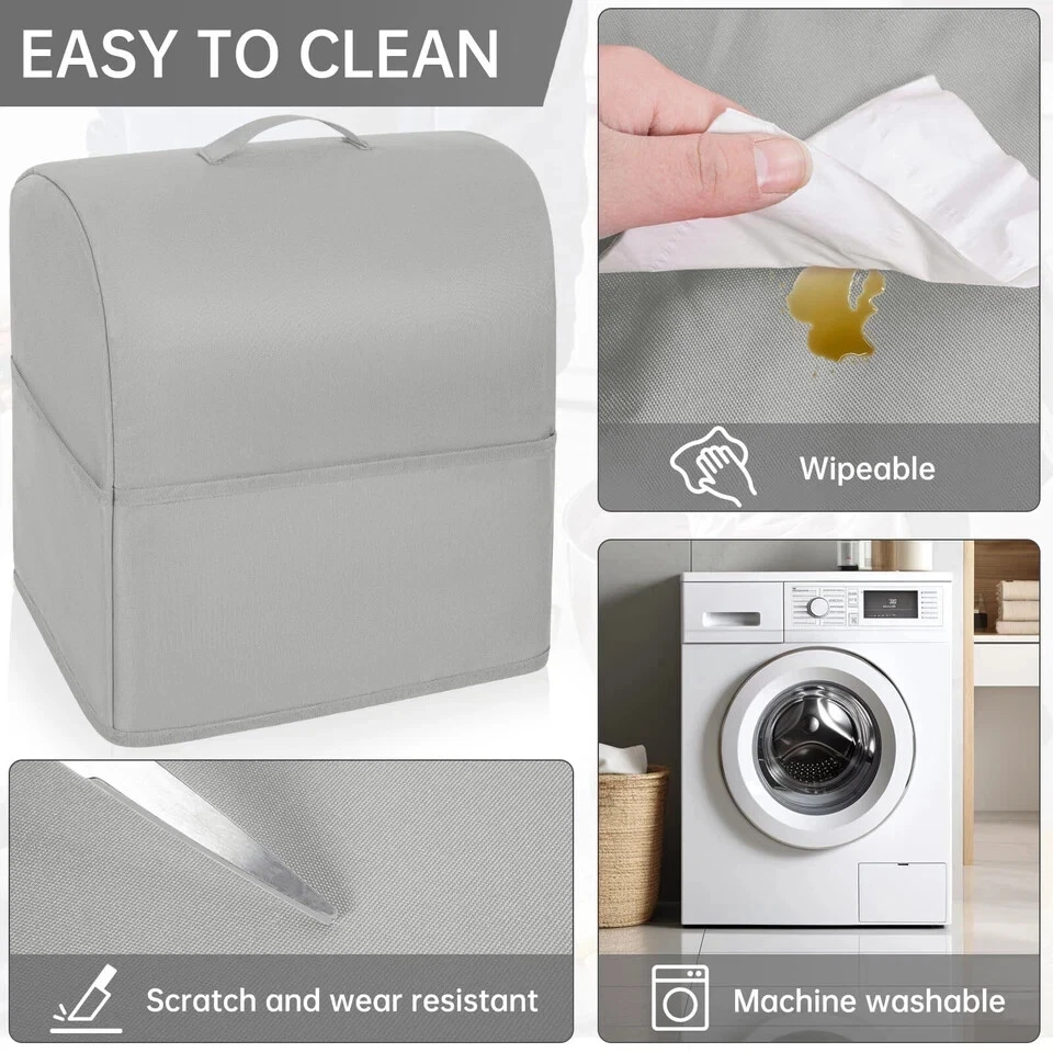 Stand Mixer Dust Cover Compatible with Kitchenaid 6/7/8 Quart Water-resistant Kitchen Aid Mixer Cover with 3 Pockets and Handle (Grey) 【Durable & Dustproof Stand Mixer Dust Cover】: Made of high-quality, tear-resistant polyester, this kitchen aid mixer cover shields your stand mixer from dust, scratches, cat hair, and kitchen spills, keeping it clean and always ready to use. 【Compatible with Kitchen Aid Mixers】:Measuring 14.5"x9.5"x16.5", this kitchenaid mixer cover fits 6-8 quart tilt stand mixers, covers the entire mixer and even the bowl, compatible with Kitchenaid, Sunbeam, Cuisinart, Hamilton and other models of mixers. Also works well for small appliances like coffee makers and toasters of the same size. 【Thoughtful Design with Storage Pockets & Handle】: Designed with three spacious pockets, this kitchen aid covers for stand mixer easily stores attachments, spatulas, manuals, and recipe booklets. The kitchenaid stand mixer cover with a sturdy top handle allows for easy lifting without hassle. 【Water-Resistant & Easy to Clean Fabric】: Our kitchenaid covers for stand mixer with waterproof exterior resists kitchen splashes and stains, simply wipe it clean with a damp cloth or toss it in the washing machine for effortless maintenance Shipping We offer FREE shipping on all orders! We ship within Three business days of payment, usually sooner. We use a selection of shipping services such as UPS, FedEx, USPS etc. We only ship to the lower 48 states, no APO/FPO addresses or PO Boxes allowed. Local pickups and combined shipping options are not provided at this time. Return You can return a product for up to 30 days from the date you purchased it. Any product you return must be in the same condition you received it and in the original packaging. Please keep the receipt. Payment We accept payment by any of the following methods: PayPal Please pay as soon as possible after winning an auction, as that will allow us to post your item to you sooner! Feedback Customer satisfaction is very important to us. If you have any problem with your order, please contact us and we will do our best to make you satisfied. Contact Us If you have any queries, please contact us via ebay. We usually respond within 24 hours on weekdays. Please visit our eBay store to check out other items for sale! Thank you for shopping at our store.
