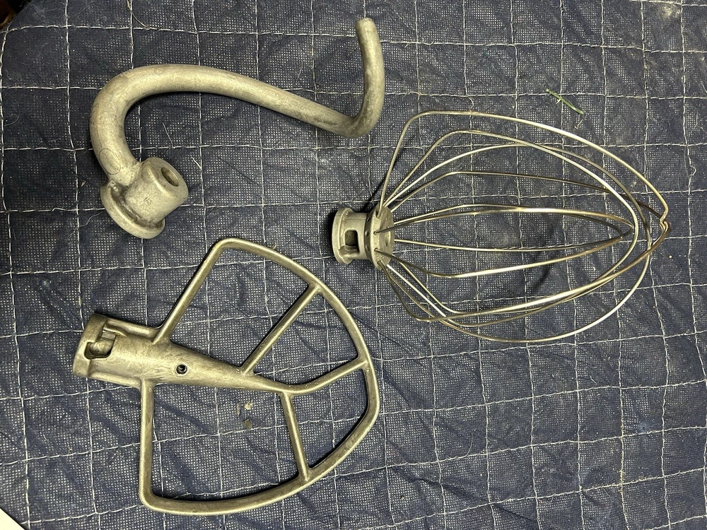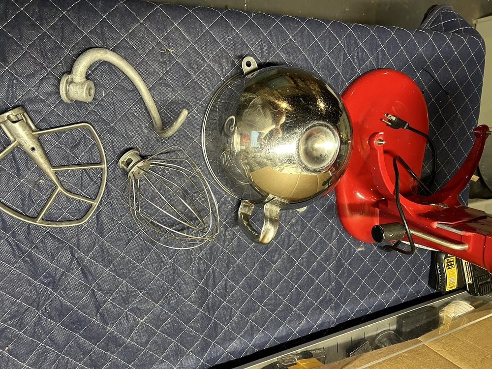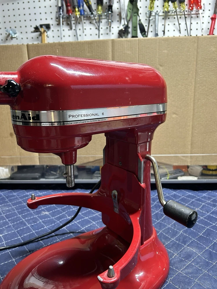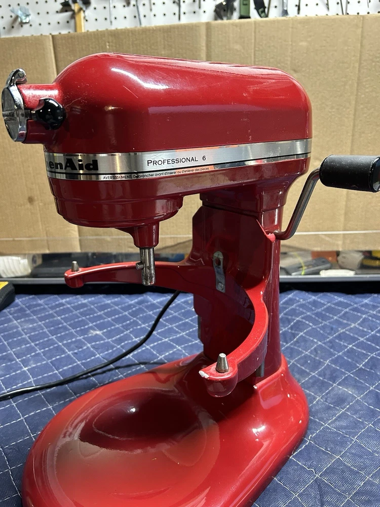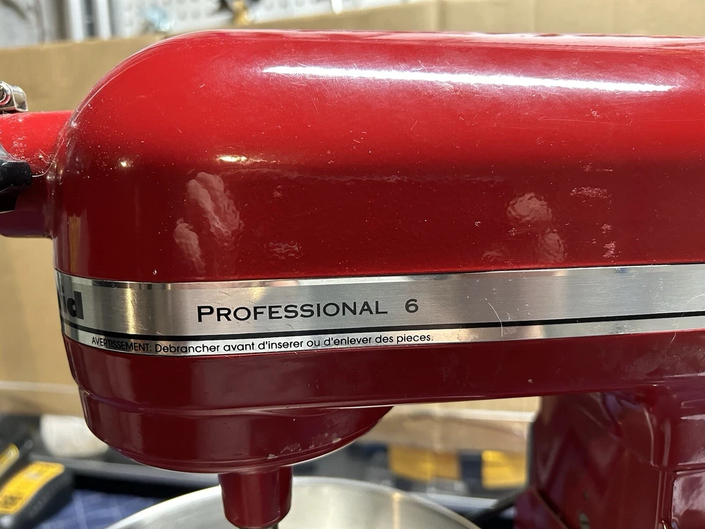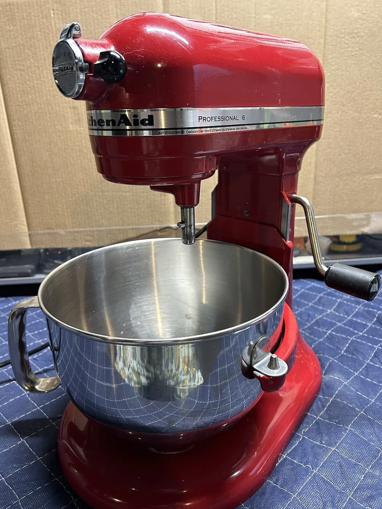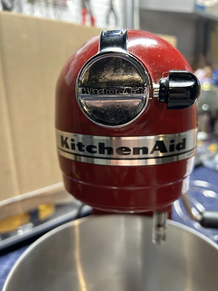 Gently used 600 Series Stand Mixer, perfect home chef or professional. This mixer features 10 different speeds and a powerful 575 watts, ideal for mixing and kneading dough, and more. This KitchenAid mixer comes in a vibrant red. Includes all attachments 6qt bowl, paddle, dough hook, and whipping attachment