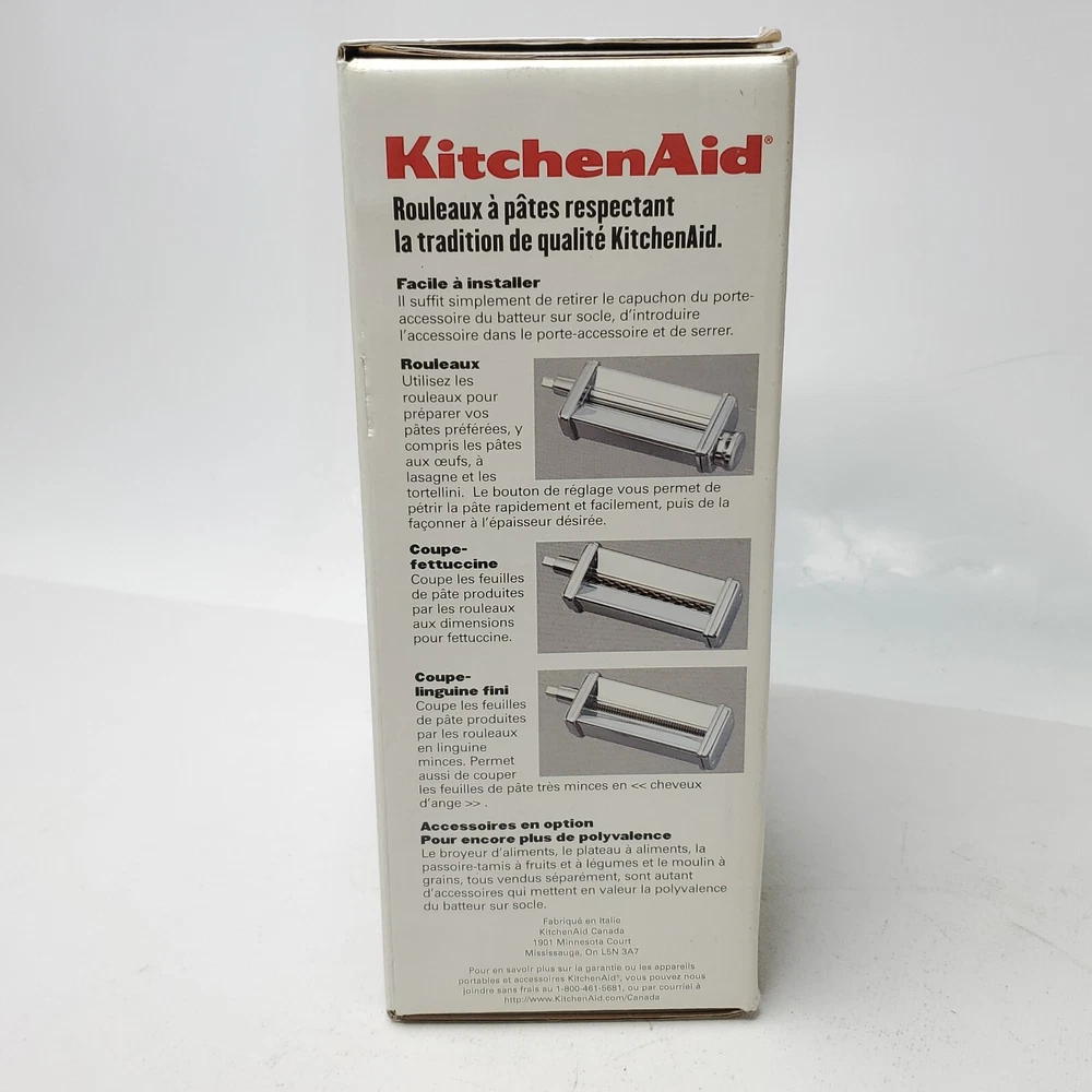 KitchenAid Stand Mixer 3 Piece Pasta Roller & Cutter Attachment Set Metal - KPRA New in the box.