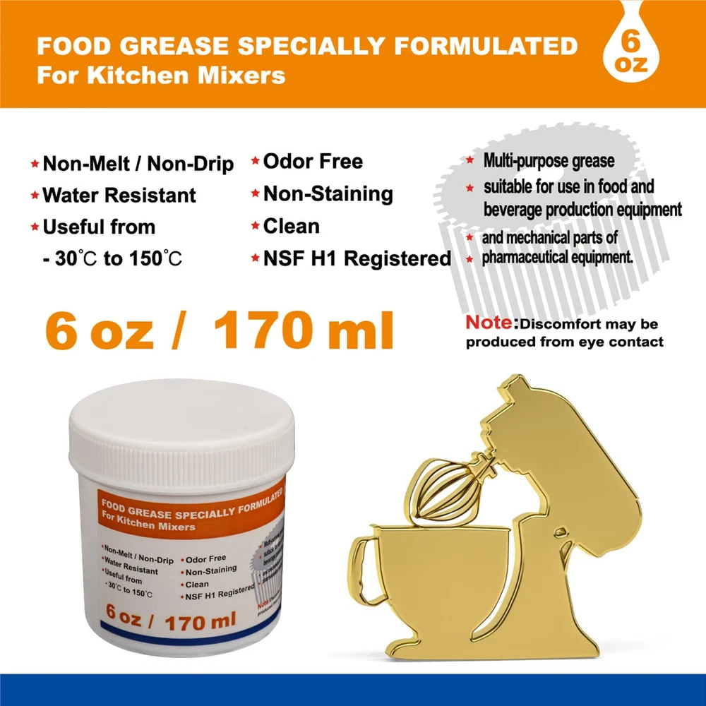 6Oz Food Grade Grease For Kitchenaid Stand Mixer Gasket Spoon Gasket and Spoon ✅ 6 Oz Food Grade Grease for Kitchenaid Stand Mixer with 9709511 WP4162324 4162324 Gasket and Spoon Easy to Use Product Description: The 6 Oz Food Grade Grease for KitchenAid Stand Mixers is a high-quality lubricant designed specifically for use with your KitchenAid mixer. Paired with the 9709511 WP4162324 4162324 Gasket, this grease ensures smooth operation and prolongs the lifespan of your stand mixer. Easy to apply with the included spoon, it helps reduce wear on your mixer’s components, allowing for long-lasting, optimal performance. Features: Food Grade Safe: This grease is food-grade, ensuring it is safe to use with your kitchen appliances, including food preparation equipment like your KitchenAid stand mixer. Long-Lasting Protection: Provides long-lasting lubrication to reduce friction and wear on mixer gears, ensuring your appliance runs smoothly for years. Compatible with KitchenAid Mixers: Specifically designed for use with KitchenAid stand mixers, including models requiring WP4162324 and 9709511 gaskets, ensuring a perfect fit. Easy Application: The included spoon makes it easy to apply the grease precisely where needed, preventing over-application or messy handling. Includes Gasket: Comes with a high-quality gasket (WP4162324) to ensure a proper seal, preventing leaks and maintaining the effectiveness of the grease. Optimal Performance: Helps maintain the efficiency of your mixer, promoting smoother functioning and reducing the chances of mechanical issues. Perfect Size for Kitchen Use: The 6 oz size is perfectly suited for use with your KitchenAid mixer, offering just the right amount of grease for a maintenance cycle. Durable and Reliable: Designed for durability, this grease maintains its consistency and performance over time, keeping your mixer in top condition. Material Polytetrafluoroethylene Recommended Uses For Product Kitchen Package Information Jar Liquid Volume 6 Fluid Ounces Package Dimensions 4.76 x 4.09 x 3.39 inches; 9.14 ounces Shipping Fast shipping is very important for us. Our standard USA shipping service is FREE. Your order will be shipped within 1-2 business days upon full payment received. Your order will be delivered within 1-3 business days after the handling time. We only ship to the confirmed address. We reserve the right to cancel any order for any reason at any time. We are not responsible for undeliverable addresses. Returns and payment We offer a 30 days return policy from checkout winning date. FeedBack Your feedback very important to us, after you get your package and you are satisfied with our service please leave us positive feedback If you have any problem with your order / any questions please before leave any type of feedback For any questions, using eBay contact system Please visit our eBay store to check out other items for sale! Thank you for shopping at our store.