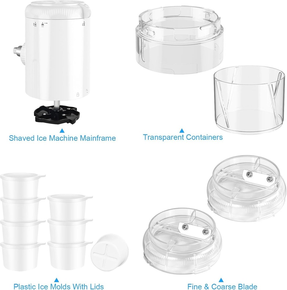 Perfect Shaved Ice Attachment for KitchenAid Mixers: In the hot summer, adults and children will always want to cool off, and there is nothing can beat a bowl of delicious shaved ice made by yourself! ! This is the Best Gift for KitchenAid mixers' fans. Fits all KitchenAid stand mixers. (Not created by KitchenAid Brand) Customize Your Exclusive Flavor: Your customization options are endless: freeze and shave, a fine or coarse texture, of freshwater, juice, coffee, milk or dairy. You can vary the thickness of the shaved ice according to your own preferences and needs by switching between coarse and fine blades. Let's Enjoy Summer with Shaved Ice: Shave Ice is no ordinary-frozen treat. Traditionally made by shaving large blocks of ice, its texture is light & fluffy, unlike the hard and crunchy snow cone. With the Shave Ice Attachment, it's so easy to create light, fluffy and snow-like shaved ice to elevate a variety of desserts and drinks. Convenient & Creative: Connect the assembled shave ice attachment to the mixer, take out the pre-frozen round ice cubes from the equipped ice mold, put them into the accessories of the ice shaving machine, start the mixer to the maximum speed gear, and the pieces are light and fluffy. The ice flocs/smoothies will be produced quickly, and a cup of shaved ice will be made within 60 seconds! ! Ease of Cleaning and Maintenance: The detachable components of the shaved ice attachment, including the ice cup, blades, and ice molds, are designed for convenience and cleanliness. These are safe for the top rack of the dishwasher, making cleanup easy after ice shaving. Do not immerse Housing in water or other liquid. Wipe clean with a warm, damp cloth, and dry thoroughly with a soft cloth before re-use or storing.