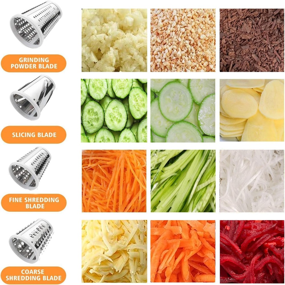 Package Included Durable Food Slicer Attachment 4 Stainless Steel Blades User Manual Cleaning Brush 【Food-Grade Materials】 's newly upgraded Slicer Shredder Attachment for Kitchenaid Stand Mixer is made of Food-Grade stainless steel and plastic, and the blades have been upgraded from 3 to 4, making the cheese grater attachment for stand mixer even more versatile.All products are dishwasher safe! 【Fits For All Mixer】The shredder attachment for Kitchenaid stand mixer No need to worry about product fitment. 's expert design makes perfect for mixers attachments .This cheese shredder can meet the different cooking needs of people. 【Versatility Salad Maker 】- 's accessories and attachments has 4 interchangeable blades, use them to easily slice, shred, and grate food,great for grating cheese,zucchini,cucumbers, onion,carrots,potato, crackers,chocolate,peanuts,almonds,ice cubes and much more,use them for salads,coleslaw,pizza toppings,tacos,desserts,smoothies and more dishes. 【Easy to Clean & Dishwasher Safe】All parts of this shredder attachment are dishwasher safe. The blade facing inward prevents you from hurting your hands during the cleaning process. It is also easy to clean the attachment with a brush. NOTE: If carrot coloring occurs, use the solution: apply some toothpaste to the container, spread it well, and then scrub with a brush. 【Best Gift Idea】- For Christmas, New Year's Day, Father's Day, Mother's Day or other special occasions, vegetable chopper will be the best gift choice to show your family, loved ones or friends that you care. The salad shooter save you more time and energy than using a hand-cranked shredder. 【Good Service 】 We also place a high value on the customer experience. We offer a 365-day warranty and 24-hour customer service.