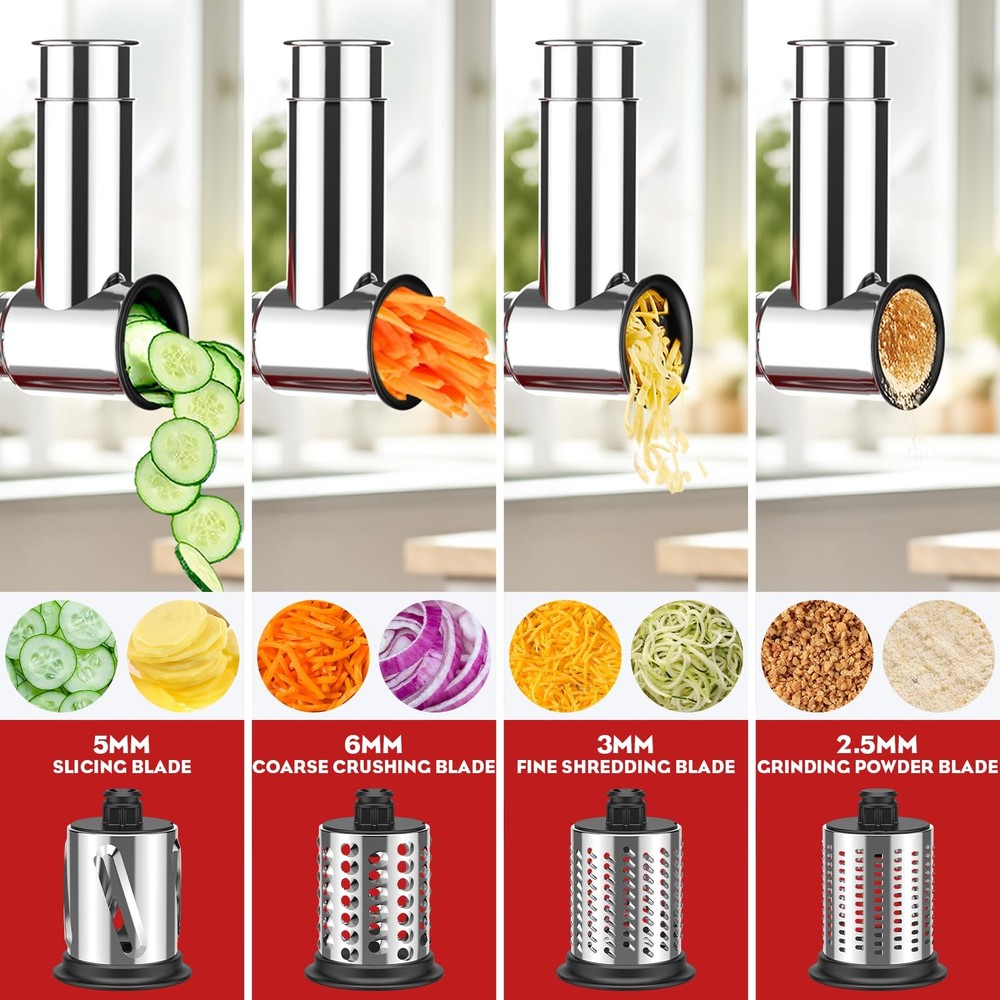 Stainless Steel Slicer Shredder Attachment for Kitchenaid Stand Mixer Fit for All Kitchenaid Stand Mixer: Our's for kitchenaid cheese grater attachment upgrade whole 304 stainless steel material, with 4 interchangeable blades, which can handle a variety of ingredients, such as cheese, vegetables, nuts, more safety and save time for use. Powerful Cutting with 4 Interchangeable Blades: The slicer shredder attachment for kitchenaid stand mixer, comes with 5mm Slicing Blade, 6mm Coarse Shredding Blade, 3mm Fine Shredding Blade, 2.5mm Grinding Powder Blade. Good Helper for Kitchen: For kitchen aid cheese grater attachment for kitchenaid stand mixer, perfect for grating cheese, radish, cucumber, carrot, potato, zucchini, cookie, chocolate, peanuts, almonds, ice, etc. for salad, pizza toppings, taco, smoothie and so on. ( Please use 8 speed for grating, and pressing force should be small, remember not to cut frozen food, all frozen items need to be thawed before cutting them) All Parts Dishwasher Safe: The whole slicer shredder attachment for kitchenaid stand mixer are made of 304 stainless steel material, stonger and durable than plastic, easy to clean with dishwasher, more safety! Best Choice: Our cheese grater attachment for kitchenaid stand mixer is perfect for family, friend, loved, we have cofidence with the quality control of kitchen aid accessories, if you have any questions, please Please do not hesitate to contact us.
