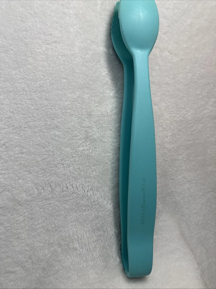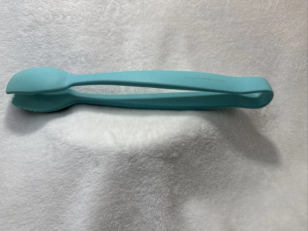Add a touch of vintage charm to your kitchen with these one-of-a-kind KitchenAid TEAL ONE PIECE NYLON Tongs. This serving utensil is perfect for any home cook who wants to look stylish while protecting their hands from heat. The nylon material makes it durable and long-lasting, while the heat-resistant nylon handle ensures comfort and safety. This unique set includes one piece with a silver color, and it is perfect for any KitchenAid brand enthusiast. Whether you are a professional chef or a home cook, these tongs are a must-have in your kitchen. Get your hands on this vintage KitchenAid tongs set today and add a touch of elegance to your cooking experience!