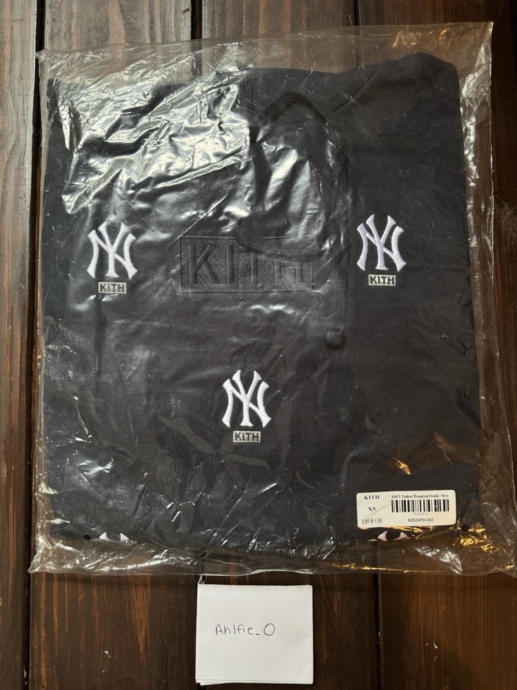 Kith For Major League Baseball New York Yankees Monogram Hoodie - Navy Color - Size Extra Small 100% brand new, 100% authentic The Hoodie has never been removed from the plastic. Never worn. *Please do note the plastic has minor cosmetic damages. Please feel free to ask for additional pictures.