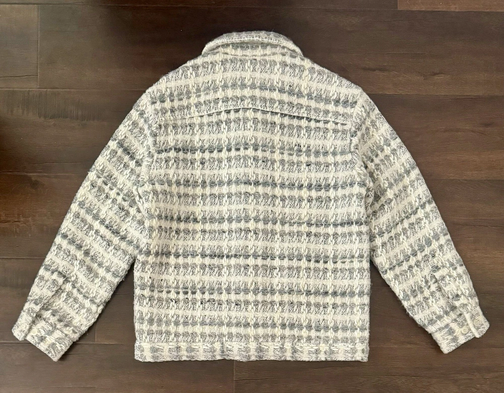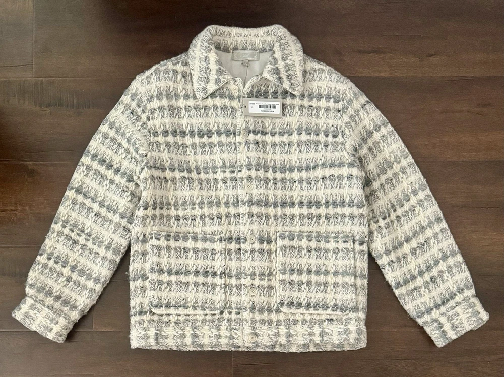 Kith Windowpane Tweed Boxy Collared Overshirt Size XS BRAND NEW SOLD OUT Can ship asap The Windowpane Tweed Boxy Collared Overshirt has a mixed knit composition, featuring an all-over plaid print. It is complete with Kith-branded button closures at the front and blanket-stitch detailing throughout. DETAILS Mixed knit Italian plaid fabric Kith-branded button closures at front and sleeve cuffs All-over blanket stitch detailing Style: khm032318-018 Color: Atrium Material: 30% Cotton / 26% Acrylic / 23% Wool / 18% Polyester / 3% Silk