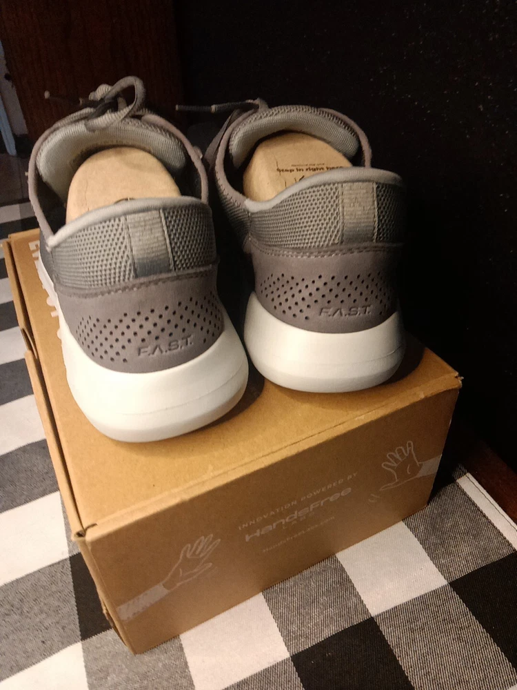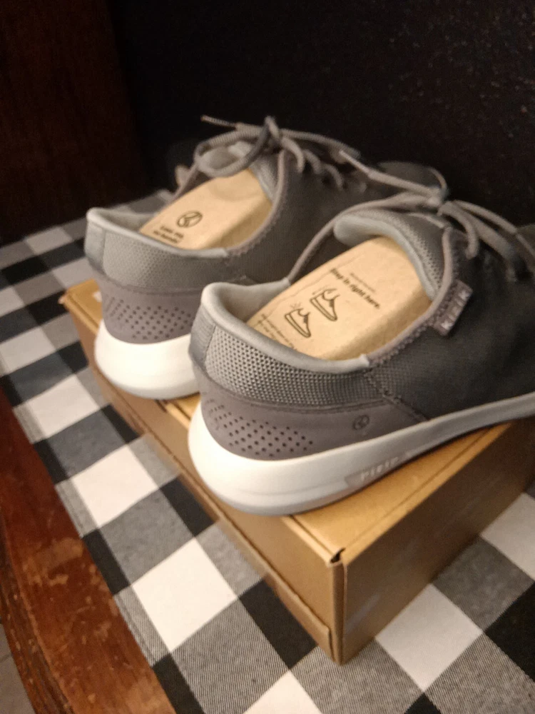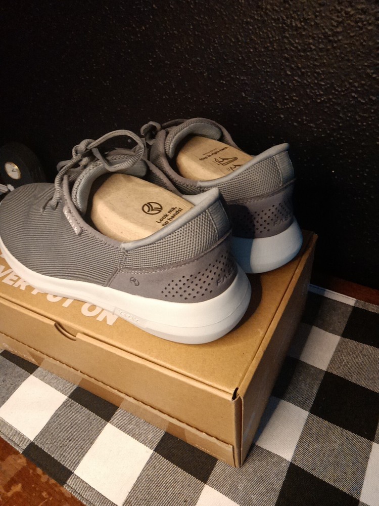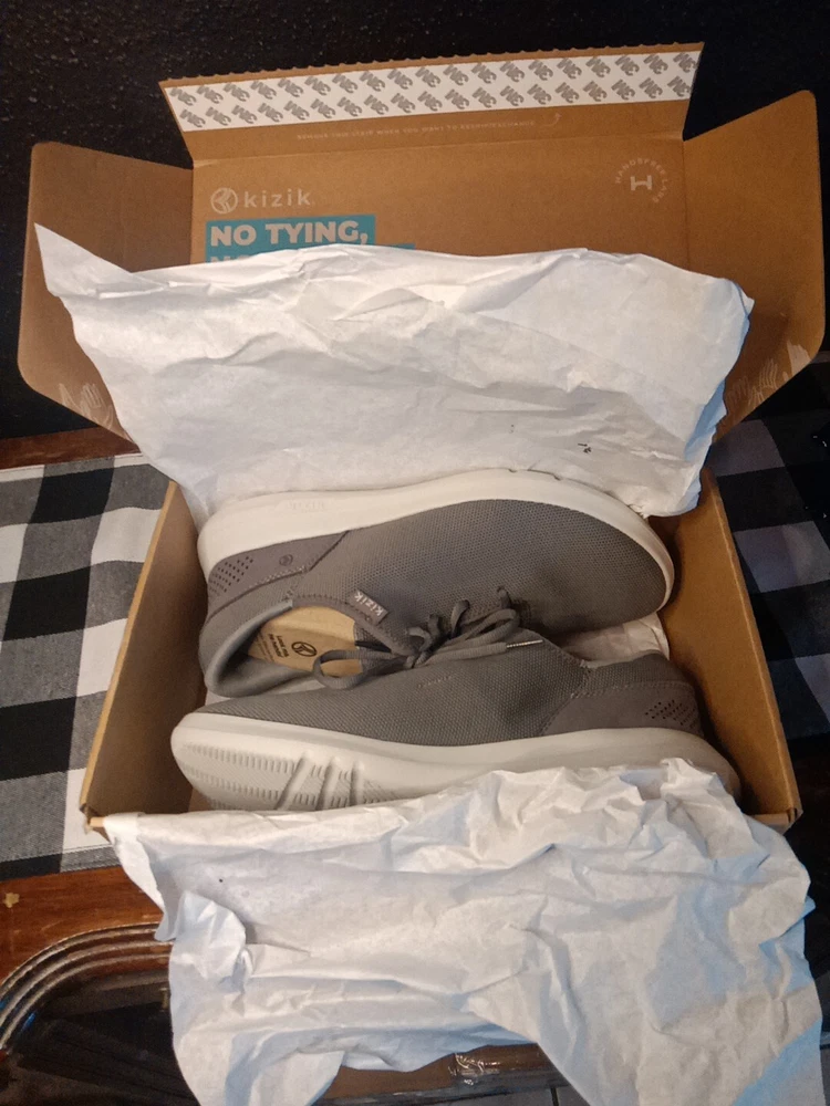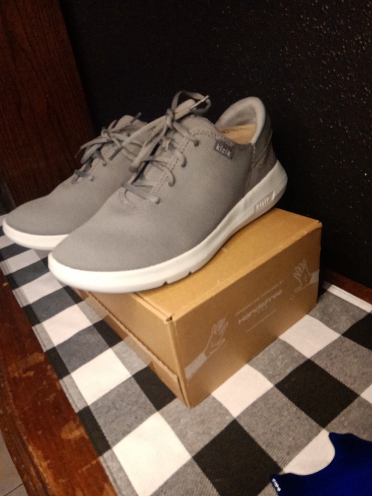 Kizik Madrid Gray Lace Up Comfort Shoes are designed for both men and women, with a size 9 for men and size 10.5 for women. These casual shoes offer easy slip-on functionality with lace-up detailing. The color is gray, providing a versatile option for everyday wear.