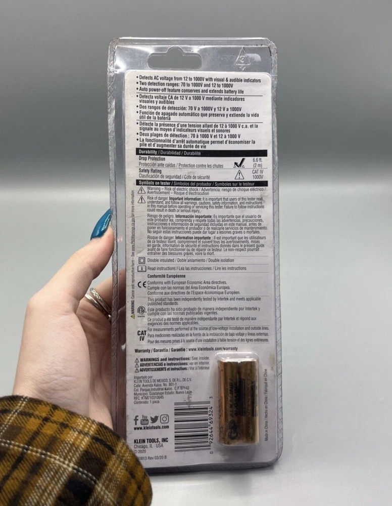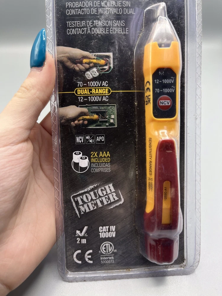 UP FOR SALE TODAY Klein Tools 12V to 1000V AV Dual Range Non-Contact Voltage Tester Model: NCVT-2P New sealed in package Package is slightly damaged on the top corners (see photos) Comes exactly as pictured. Please see pictures for more detail Free Shipping inside the Contiguous U.S.A This item is for sale through eBay ONLY! Please don't ask us to sell off eBay! Payment & Checkout Payments : We accept PayPal only for online purchases but will accept cash, debit or credit card if paying at our physical store. Payments must be received within 3 days. Unpaid cases will automatically be opened by eBay 3 days after purchase. Taxes : Buyer must pay sales tax where applicable Shipping Shipping Address : We ship to your confirmed address only. Please make any changes to your address before checkout. Shipping Carriers : USPS (First Class, Priority, Express) or Fedex (Ground/Home Delivery). We choose the shipping carrier at our discretion. Contact us before checkout if you require express/overnight shipping Local Pickup : Please contact us for local pickup information. Product Guarantee We offer a 30 Day Money Back Guarantee unless noted "AS IS" or " For Parts or Not Working" . We do our very best to accurately describe our items, however If you have any problems please contact us right away. Frequently Asked Questions What are your operating hours? Monday - Saturday 10:00am - 7:00pm & Sunday 12-5pm *Eastern Standard Time How can I contact you? Please send all communications through eBay messages. Do you ship internationally? Yes, we ship internationally through eBay’s Global Shipping Program. What is the history of the item? Most of our items are pre-owned and we do not know their history. We test each item thoroughly and picture their current condition. What's Included? Everything we sell comes exactly as pictured. If you don’t see it in our photos it will not be included. How long do I have to make payment? You have 3 days to make payment after an auction. All of our “Buy it Now” listings require immediate payment. Don't Hesitate...Negotiate! bl