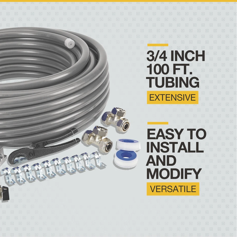 The Klutch® 3/4in. 100ft. Master Kit Compressed Air Piping System allows you to design and install your own personalized air system any way you want. The aluminum core allows the tubing to be bent by hand and shaped around corners or in awkward spaces without losing its shape. Can be mounted on the surface of a wall or behind the wall. It can also be buried underground or in concrete. No expensive tools are required. It is easy to add and change air drops as needed, since the fitting compression system can be easily disassembled and reused. The system is rated for up to 200 PSI at 73°F and 160 PSI at 140°F, which is well within the working range of most air tools. The Klutch Master Kit is an ideal solution for garages, workshops, barns or industrial buildings less than 4000 Klutch 3/4in. 100ft. Master Kit Compressed Air Piping System Northern Tool Item# 103262 Item Weight: 25.2000 lb(s) Manufacturer: Klutch MPN: 1203V002 Warranty: . Product Summary: The Klutch® 3/4in. 100ft. Master Kit Compressed Air Piping System allows you to design and install your own personalized air system any way you want. The aluminum core allows the tubing to be bent by hand and shaped around corners or in awkward spaces without losing its shape. Can be mounted on the surface of a wall or behind the wall. It can also be buried underground or in concrete. No expensive tools are required. It is easy to add and change air drops as needed, since the fitting compression system can be easily disassembled and reused. The system is rated for up to 200 PSI at 73°F and 160 PSI at 140°F, which is well within the working range of most air tools. The Klutch Master Kit is an ideal solution for garages, workshops, barns or industrial buildings less than 4000 square feet, serving several air users. Is compatible with other air line fittings. Payment Instructions You can pay us securely through eBay. All orders will contain an invoice/receipt. IMPORTANT: We will not honor requests to remove invoices or receipts from packages. No exceptions ON U.S. PURCHASES, Northern currently collects sales tax on purchases shipped to all states except: Alaska, Delaware, Montana, New Hampshire, Oregon Shipping Information This product will be shipped by Ground. Ground Shipping: Ground Shipped items must be sent to a physical address and cannot be sent to PO boxes. If a PO box address is submitted without a physical address it may delay your order. We cannot ship to APO/FPO boxes. Please note that we do not ship items on weekends or holidays. More information on shipping and handling times can be found on our Store Policies Page . Customer Care We want you to be satisfied with your purchase; please notify us by email if you have any concerns. Before you send an email message, please check our Help Section . We may already have an answer to your question! We are available to answer your email questions Monday through Friday from 8am - 3pm CST, excluding holidays. If your email is sent on a weekend, holiday or after business hours, we will respond to you on the following business day. Returns may be accepted on most items within 30 days of receipt of the item. All returns require authorization from us. Some returns are charged a 15% restocking fee. Please click the Shipping and Payments tab on this item for specific return information and full details. About Our Products Product Warranty: Warranty information and contact details can be found on our Store Policies Page. We are working hard to ensure that the information provided on the eBay product advertisements is accurate and up-to-date. We reserve the right to correct ad errors and/or omissions. Pricing and availability is subject to change without notice. No