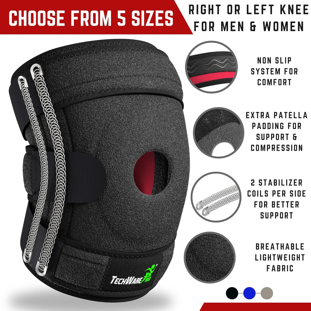 Store New Arrivals Add to Favorite View Feedback Contact Knee Brace Support - Knee Braces for Knee Pain. Relieves ACL, LCL, MCL, Meniscus Tear, Arthritis, Tendonitis Pain. Dual Stabilizers Non Slip Neoprene. Adjustable Bi-Directional Straps -5 Sizes Description Part Number Knee Support Brace #1 Style Athletic Number of Items 1 Color Black Item Weight 0.3 Pounds Material Neoprene Package Weight 0.16 Kilograms Sport Type Tennis, Weightlifting, Gymnastics, Gym Workout, Volleyball, Golf, Running, Cycling, Basketball Suggested Users unisex-adult Use for Knees Model Name Knee Brace Age Range (Description) Adult Specific Uses For Product Knee Braces for Knee Pain, ACL, LCL, MCL, Meniscus Tear, Arthritis, Tendonitis Pain Item Package Dimensions L x W x H 7.17 x 6.02 x 1.65 inches Size Large Adjustable bidirectional support: Alternating strong closures stabilizes the patella to reduce knee pain; unlike single-sided straps, this design ensures even support; measure circumference around knee and thigh for proper fit; see sizing chart image Open patella design: Offers support and compression around the kneecap and tendon areas; equipped with four flexible spring stabilizers for enhanced kneecap protection and stability Breathable, moisture wicking lightweight neoprene: Add three no slip silicone strips to ensures comfortable and uniform compression that stays in place during any physical activity Comfortable support pain relief: Helps with tears, arthritis, bursitis, and tendonitis; gel pad assists with inflammation and swelling; enhances knee mobility and exercise performance Great for a wide range of sports activities: Ideal for basketball, football, tennis, volleyball, weightlifting, skiing, wrestling, yoga, gymnastics, squats, baseball, martial arts, hockey, dance, soccer, gym workouts, cycling or any sports activities Maximum runners knee support: Can help with walking, running, hiking, rucking, jogging, powerlifting or any activity that stresses the knee repeatedly Available in 5 sizes: Medium, Large, Extra Large, XX-Large, and XXX-Large; suitable for men, women, and youth: please see size chart Product Description TechWare Pro Makers of Quality Supports TechWare Pro Knee Brace Support TechWare Pro Bi-Directional Knee Support Brace Get Back in Action Without the Pain with Our Unique Knee Brace We have tested others and have discovered what makes the best knee support and integrated them into ours. * ALTERNATING HOOK AND LOOP STRAPS - that applies even support and compression. * CONSISTENT PAIN RELIEF -for most activities from work to play. * MAXIMUM SUPPORT AND COMPRESSION - surrounds the knee while allowing full mobility. * BETTER KNEE STABILITY - with open patella design and 4 flexible spring stabilizers. * MAXIMUM COMFORT - no matter what activity with breathable moisture wicking neoprene construction and non slip silicone strips. GET BACK TO DOING WHAT YOU ENJOY START HEALING YOUR INJURY - with consistent use. Extra support will prevent injury. EASY TO USE - Choose from 4 sizes. Measure the circumference around the center of the knee cap and the circumference 3 inches above the center of the knee cap. Then use the Size Chart to determine best size. Sizes Medium, Large, X-Large, XX-Large and XXX-Large available for men, women and kids. Don't Miss Out on another Day of You Favorite Activity Pain Relief of Meniscus Tears, ACL / MCL Injuries, Arthritis, and Tendonitis. The Best Exercise Support - CrossFit, Basketball, Tennis, Volleyball, Jogging, Walking, Hiking, Wrestling, Skiing, Soccer, Gym Workout, Golf and Other Sports. Or just all day comfort without knee pain no matter what activity. TechWare Pro Products - Be Active / Stay Active Get the RIGHT COMPRESSION and FIT WITH TWO MEASUREMENTS - USE SIZE CHART BE ACTIVE - STAY ACTIVE MAXIMUM COMFORT AND FLEXIBILITY Stretch breathable neoprene for everyday use or sports activities. Does not restrict movement while giving continuous support. TECHWARE PRO PERFORMANCE We combine Technology with Quality and get the Performance that you require out of a brace so you can get back to all your activities. GET BACK INTO THE GAME If Your Game is Basketball, Tennis, Running, Walking, Hiking, Golf, CrossFit / Gym, Bicycling or other Sports. Get Back to Your Activities. STAY ACTIVE / BE ACTIVE ABOUT US We offer the best prices around on high quality products. Our E-store includes media such as books, movies, music and games while offering electronics, toys, sporting apparel, clothing, tools, general home, garden items and more. SHIPPING We are always working hard to ensure your package arrives as soon as possible. Please understand that some factors like weather, high postal traffic, and the performance of shipping companies are outside of our control. We offer free shipping to the lower 48 states and ship within 2 business days of payment, usually sooner. We do not accept P.O. Boxes. Please provide a physical address. For shipping outside of the continental USA, we only use eBay's Global Shipping Program.The item is shipped to KY and then sent to the rest of the world. International customers are responsible for all duties and taxes. Continue to check out in order to calculate costs for shipping the item to your country. Messages regarding eBay's Global Shipping Program MUST be directed at eBay EXCLUSIVELY. RETURNS We offer a 30-Day Return Policy on items which you are not completely satisfied with. You have the option for a full-refund or an exchange of the item. No returns are available on items shipped outside of the USA. PAYMENT We accept PayPal. CONTACT US This page content is yet to come Please ad us to your favorite seller and visit again later Thank You CUSTOMER SATISFACTION We try our very best to make sure every customer is completely satisfied. If there's a problem, message us! We're happy to help. WE ACCEPT Copyright © 2021 AutoDS. | All Rights Reserved