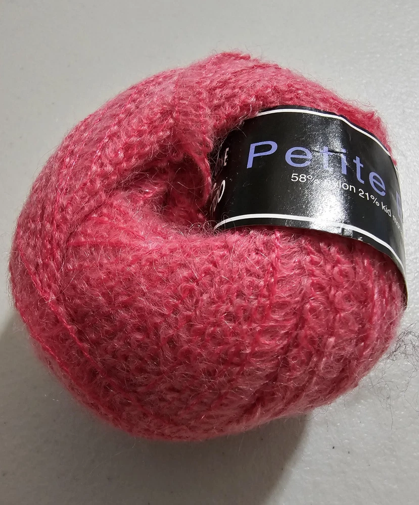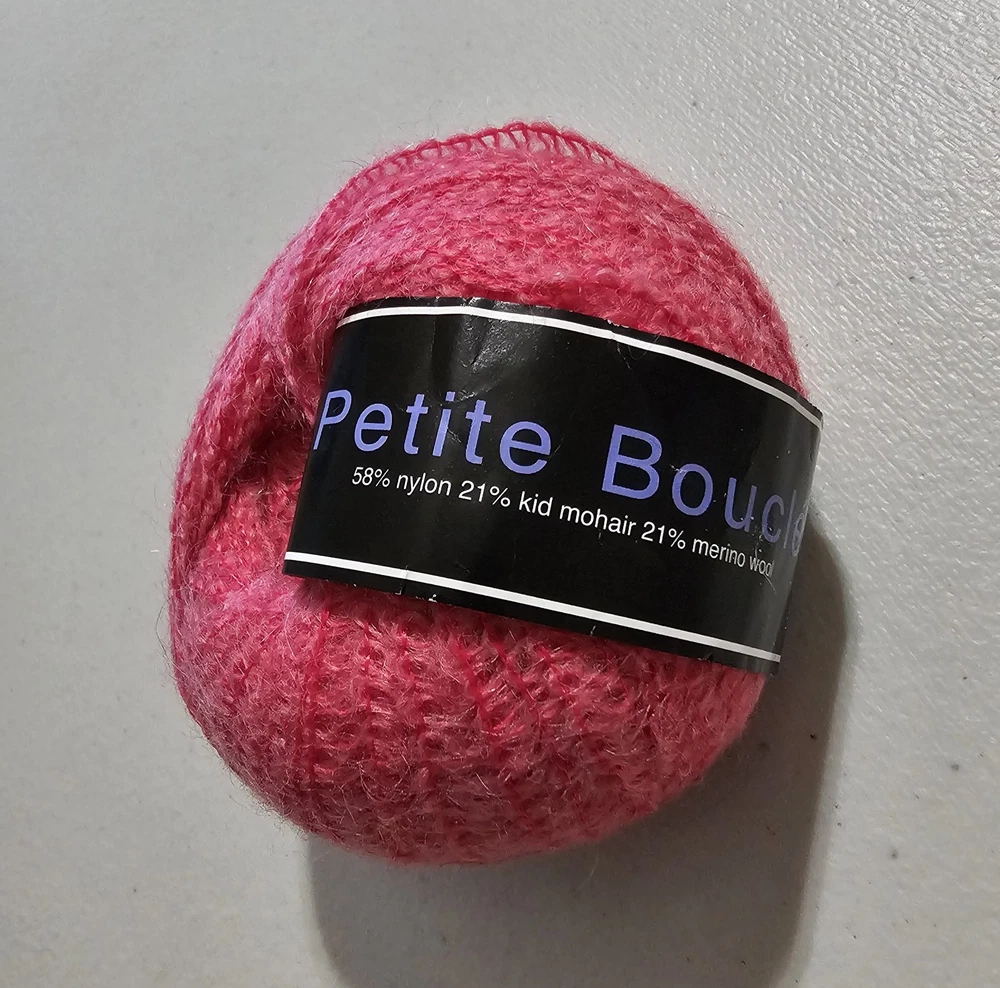 Knit One Crochet Too Petite Boucle kid Mohair Merino Wool nylon blend yarn. 50 g. 82 yds. Color: kind of salmon pink Fiber content: 58% Nylon 21% Kid Mohair 21% Merino Wool Returns accepted within 30 days in same condition as purchased. Buyer pays return shipping. Shipping USPS ground.