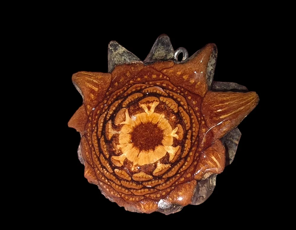 Knobcone Slice Pendant. Shipped with USPS First Class. Made from the Knobcone pine tree from California. Rare and hard to acquire even if you live near the trees. The color looks different in the pictures due to the light that is why I am taking close up pictures of the color. Comes with a Brown leather 18" or 20" corded necklace or a sterling silver chain. Please let me know when you purchase the pendant which one you prefer. Knobcone and lodgepole pinecones react uniquely to prolonged heat exposure. Do not wear while tanning for over 1.5 hours without getting into some shade. Please don't leave them hanging from your car mirror as decorations. The result of extended heat exposure is a slow and steady expansion of the pinecone slice itself, resulting in a "expanded" appearance and will not be able to be worn..I included information on why this is very important. These pendants are sturdy and should last a lifetime of daily use with that in mind. Secondtimearound Pinecone Talismans represent a reclamation of the emblematic power and natural beauty of the Pinecone, the Pineal Gland, and the ancient historical heritage accompanying one of Mother Nature's most compelling organic symbols. Secondtimearound Necklaces and Talismans are made from the polished cross-section of a living pinecone, sustainably harvested in unique micro climates, and specially cut, dried, cured and encased in protective resin. They are elegant, natural, and unique and symbolize the evolution of collective consciousness while harnessing the potent spiritual energy of the Pineal Gland and of the Third Eye Knobcone pines are different. Known as closed cone pines, knobcones require heat, usually from fire, in order to open up and release their seeds. This classic plant adaptation to fire is because the cones are effectively glued shut with resin, a phenomenon called serotiny. When the heat of fire melts the resin, the ¼-inch black seeds are released. Since knobcone pines tend to grow in fire-prone areas, they have evolved this adaptation over millennia, allowing the species to persist even if all the mature trees perish in a fire. Areas where knobcone pines were burned are soon covered in a blanket of seedlings. After a fire the seeds are released en masse, thriving because there is reduced competition from other plants. It is interesting to note that in the absence of fire, knobcone cones can eventually open after 20 or so years. Knobcone pine trees don’t usually get very tall, maxing out at about 30 feet, and they are often scruffy-looking due to their adaptation to living on poor, gravelly soils in hot, dry areas. The needles are a faded olive-green color and are borne in bundles of three. The cones are distinctive, as they grow clustered tightly around the branches in whorls rather than at the branch tips, as in other pine species. The cones are asymmetrical and since the scales are tightly shut, they appear knobby. Cones stay on the tree for years—so long, in fact, that the wood of the branches sometimes grows around them, leaving odd bulges in the branches.