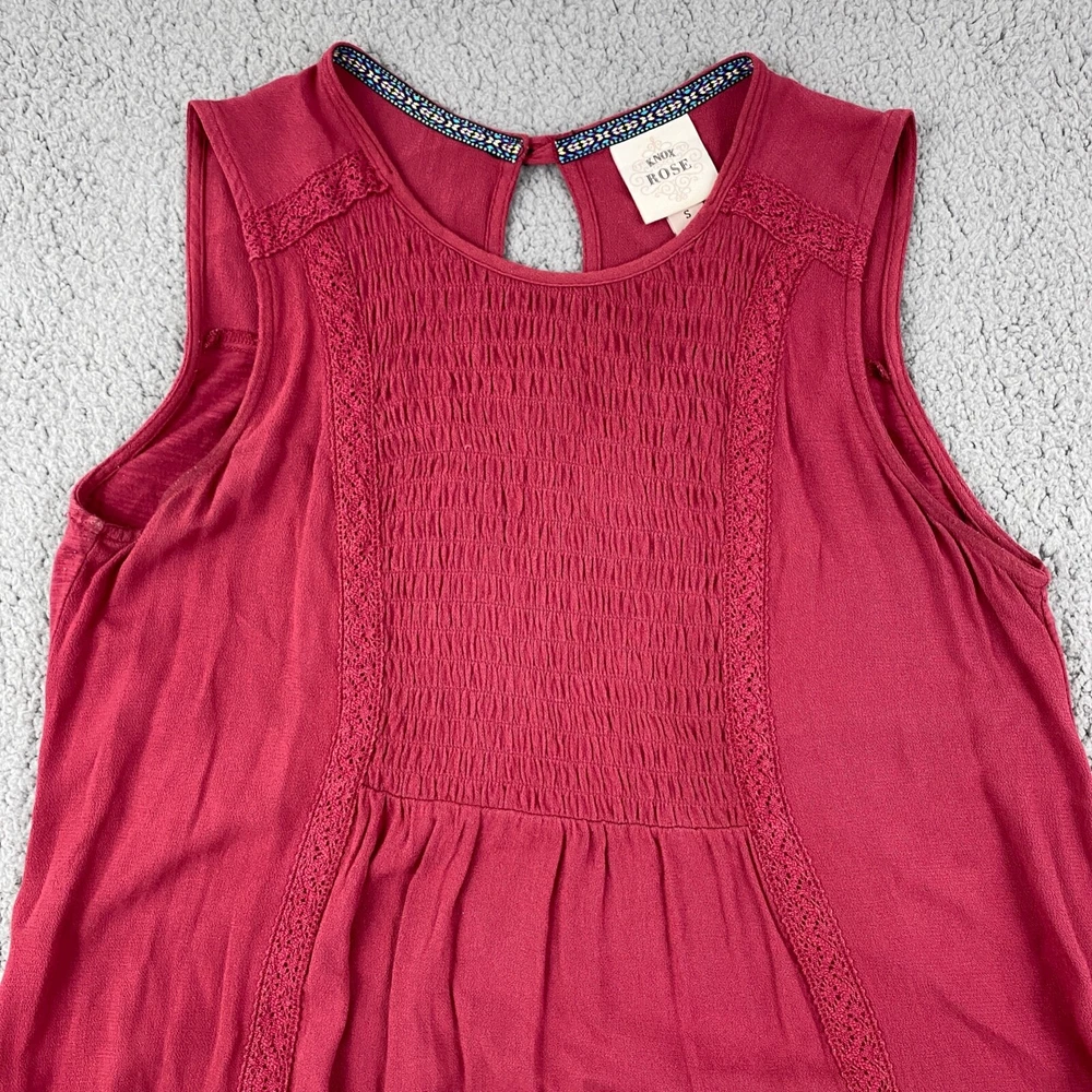 Up for sale is a - Knox Rose Sleeveless Tunic Dress Womens Sz S Red Crochet Smocked Keyhole Back Size: Womens (S) Measurements: Please check photos above for measurements in good used condition I will ship this item out via USPS Ground Advantage 2-3 Day Mail with a tracking number for confirmation Please feel free to ask any questions you may have I answer most questions instantly! Thank You For Supporting My Small Business!