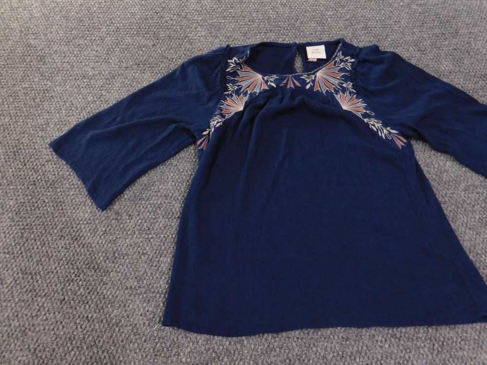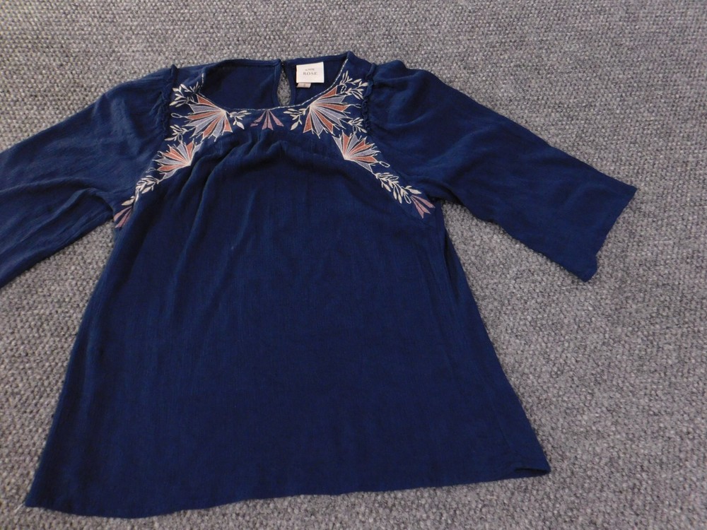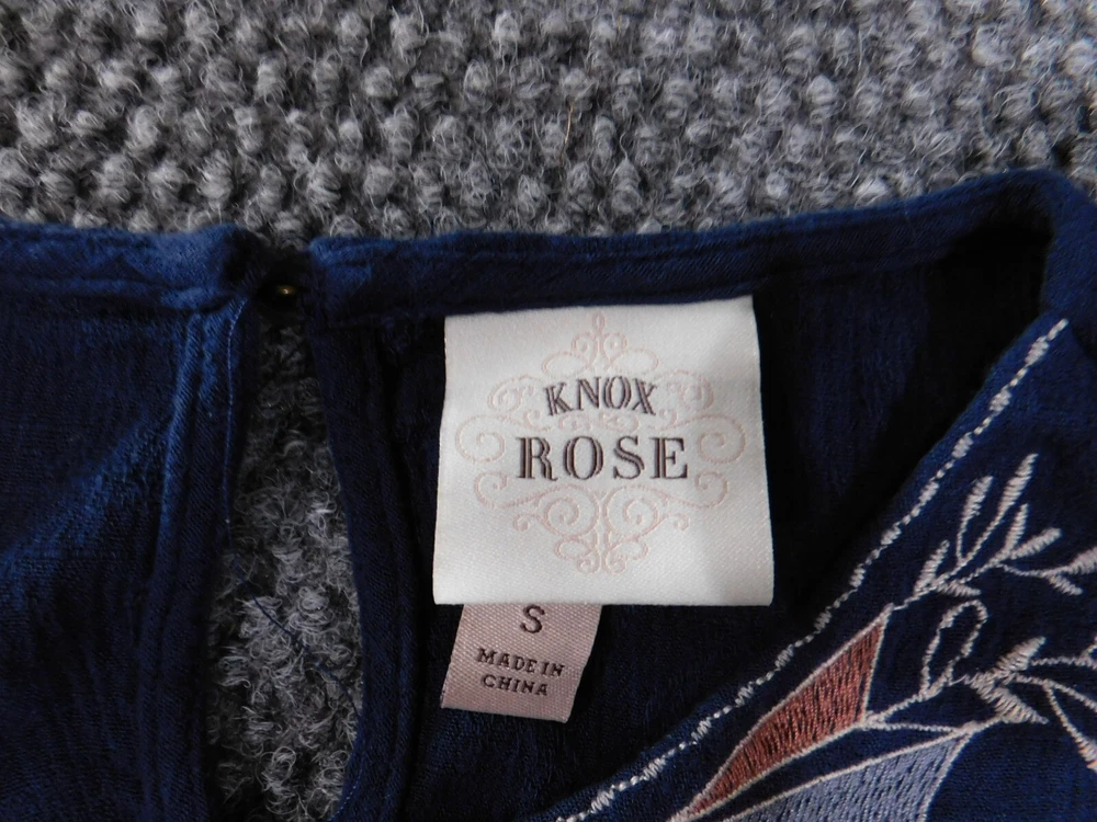 HomeKnox rose top small blue pullover womens rayon roundneck button