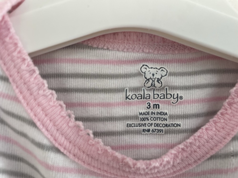 Koala Baby Girls Embroidered Floral Striped Cotton Short Sleeve Bodysuit Pink 3M. Condition is pre-owned. Smoke free, pet free home. Shipped via USPS Ground Advantage. In good condition. There are light stains on the front. Free of rips.