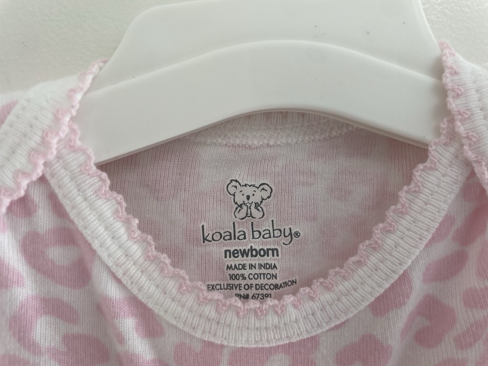 Koala Baby Girls Pink Animal Print 100% Cotton Short Sleeve Bodysuit Cream NB. Condition is pre-owned. Smoke free, pet free home. Shipped via USPS Ground Advantage. In very good condition. Free of rips or stains.
