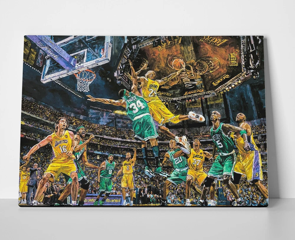 For sale is a Kobe Bryant Painting Dunk poster or canvas. Canvas are 1.5" thick, glossed and gallery wrapped museum quality canvas. The size options are 24x36, 30x40 and 40x60. Feel free to ask us any questions regarding this Kobe Bryant Painting Dunk Poster or Canvas.