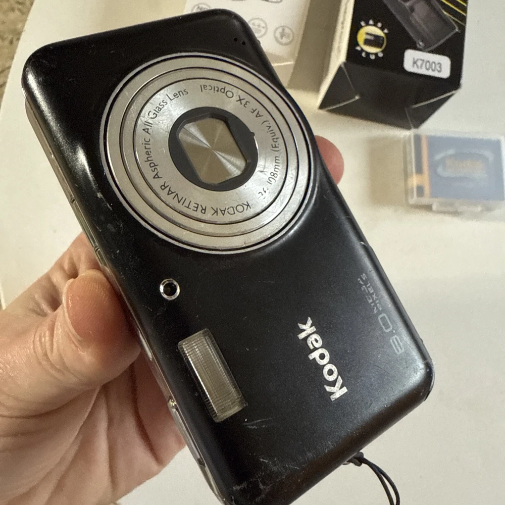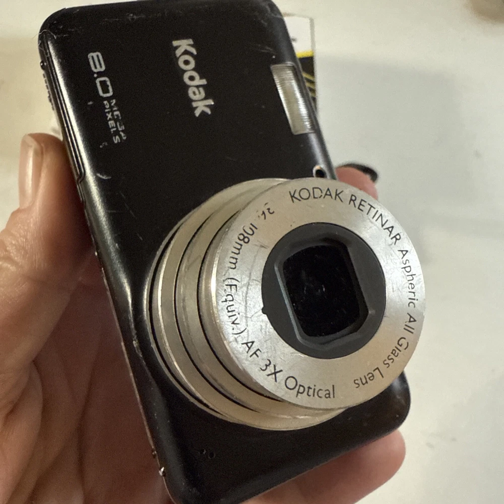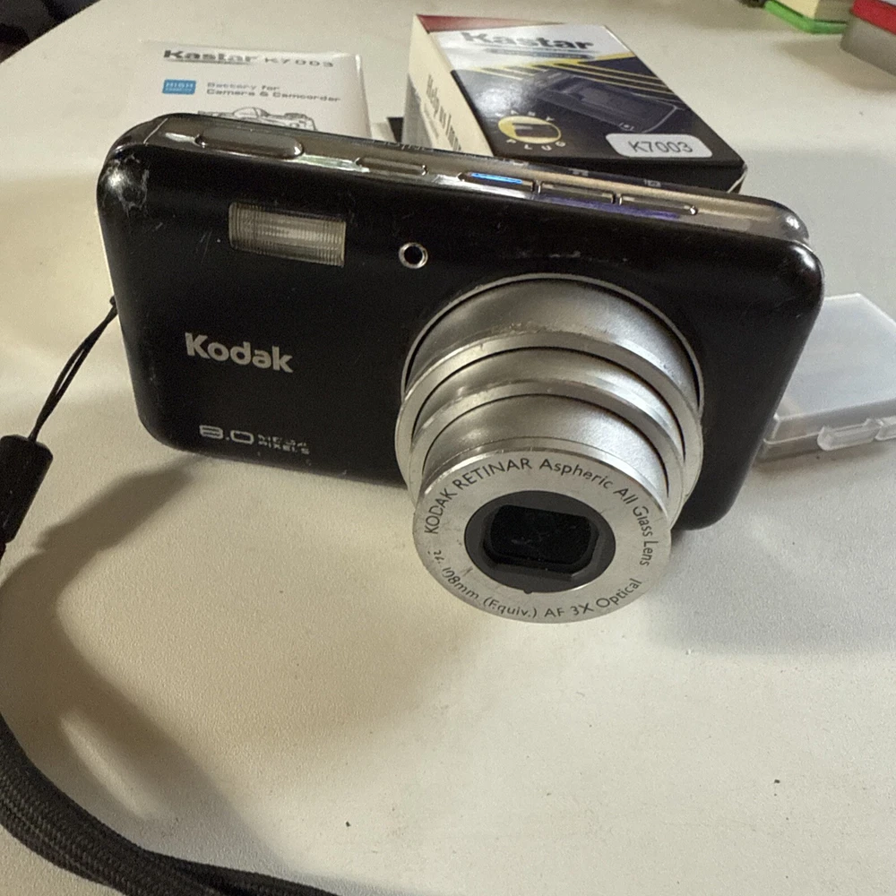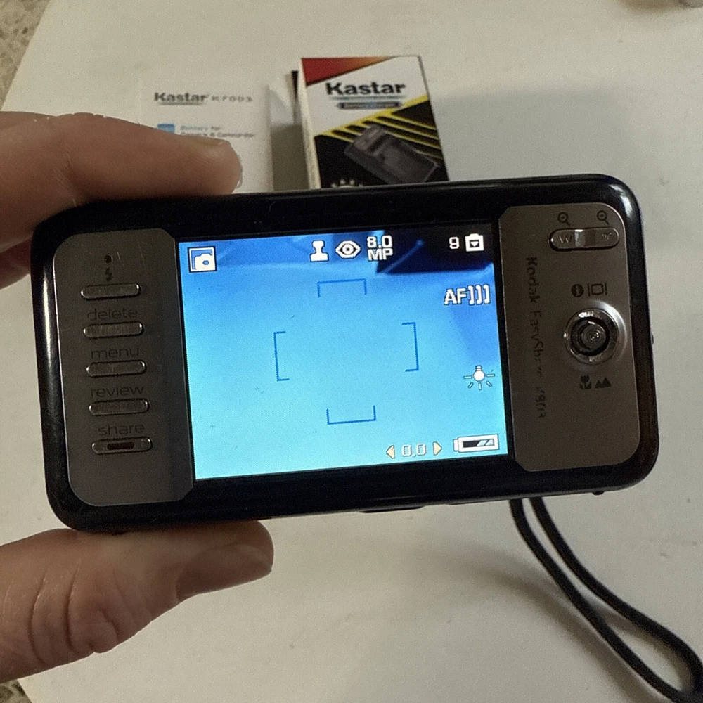 I got this in a camera lot. I ordered an aftermarket battery and charger for it . It turned right on when installing new battery I did not test original battery that came with it, but it is included in the lot . When turned on, it makes kind of a ticking sound. It’s not constant. It kind of goes on and off. I was able to take a photo and scroll through the menu . Screen has a blue color to it. I’m nervous selling this as used working that it’s going to be returned so I am selling it for parts or repair . Camera, one gigabyte, memory card, aftermarket, battery, and charger and original battery included in lot .