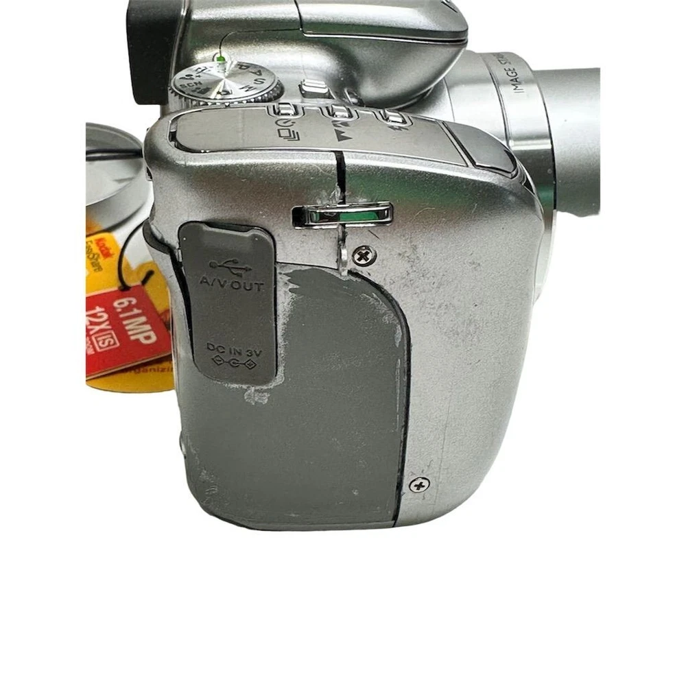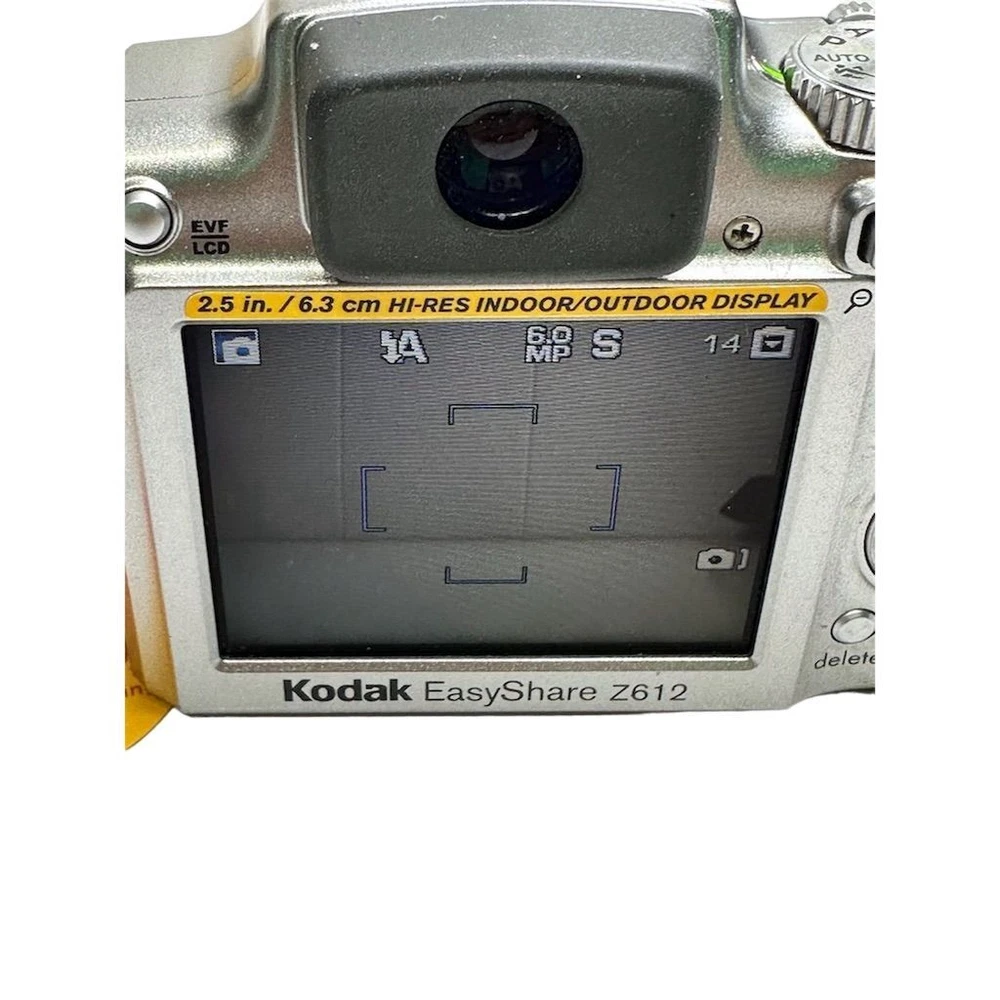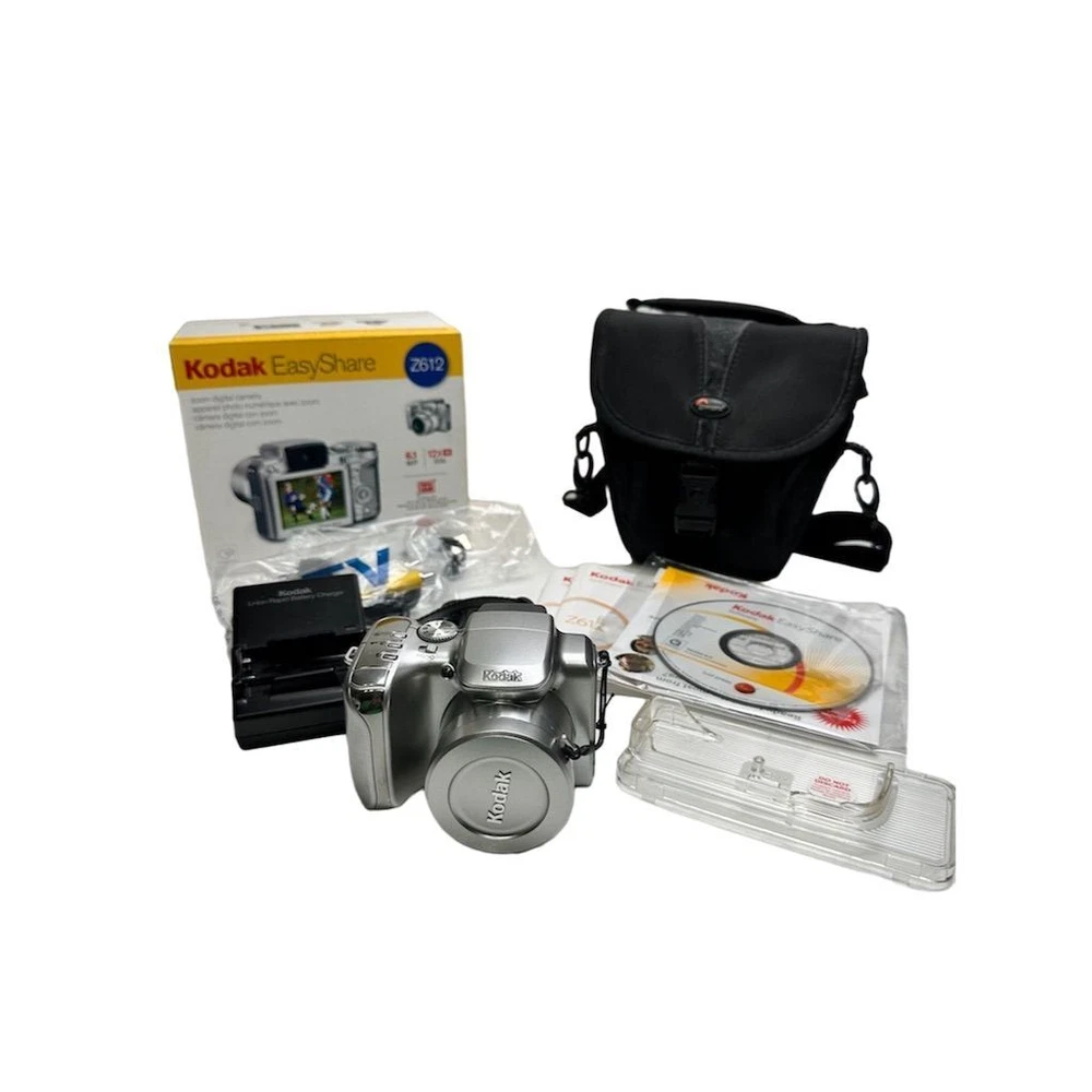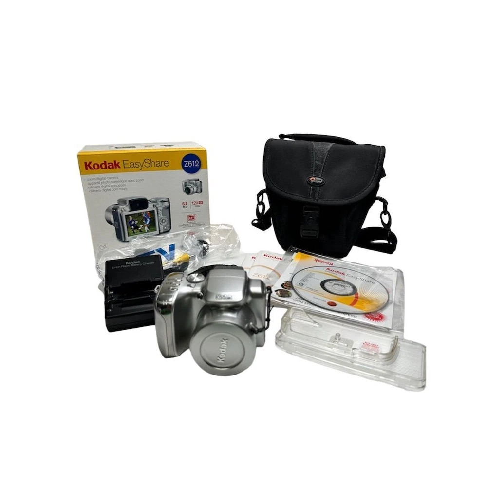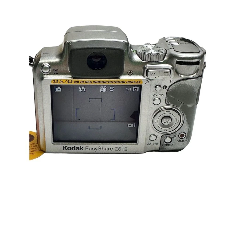 Brand: Kodak Type: Digital SLR Model: EasyShare Z612 Color: Silver Optical Zoom: 12x Features: Image Stabilization, Video recording Maximum Resolution: 6.1 MP Battery Type: Lithium-Ion Screen Size: 2.5Image Stabilization, Video recording Connectivity: USB Item Dimensions: 4.1 in (W) x 3.1 in (H) x 3.1 in (L) Item Weight: 10.8 oz Condition: Pre-owned. Some wear visible. Small crack in plastic grip, which does not affect functionality.