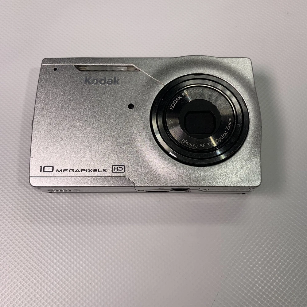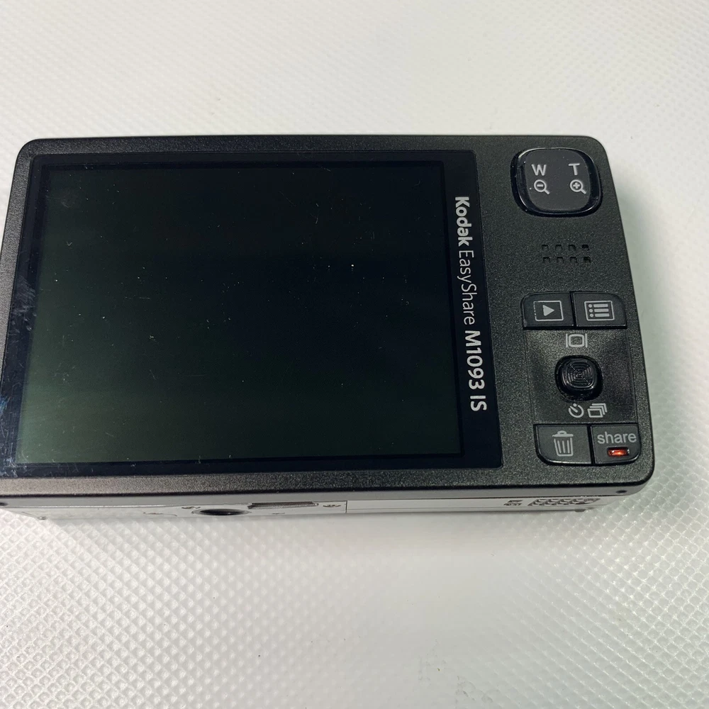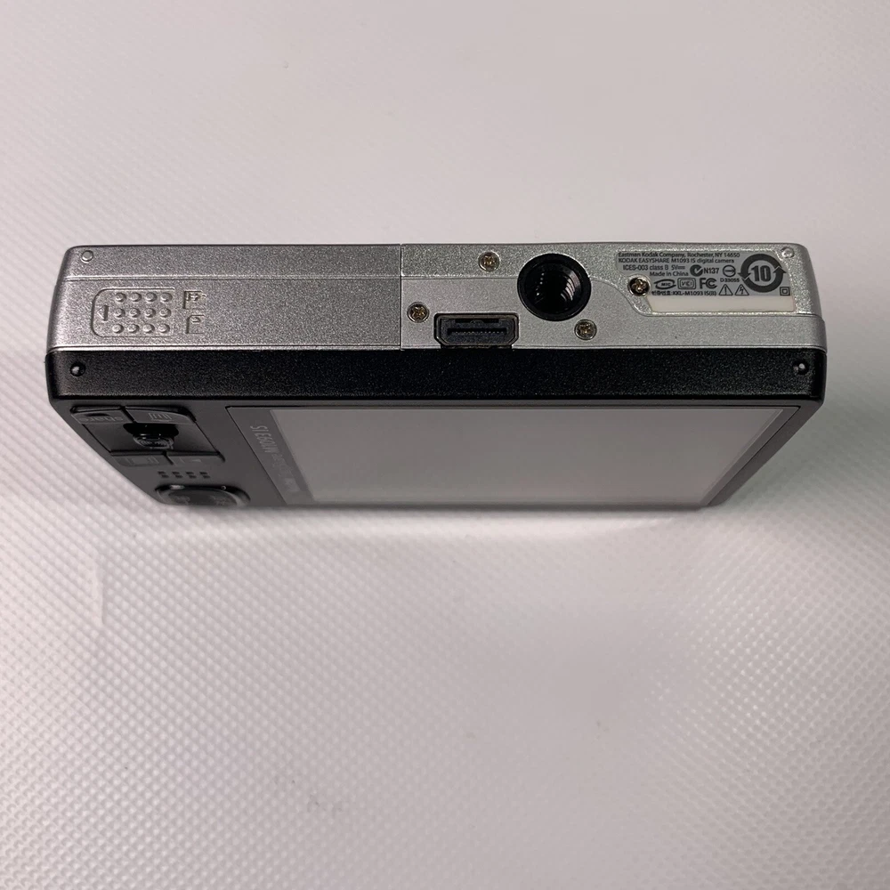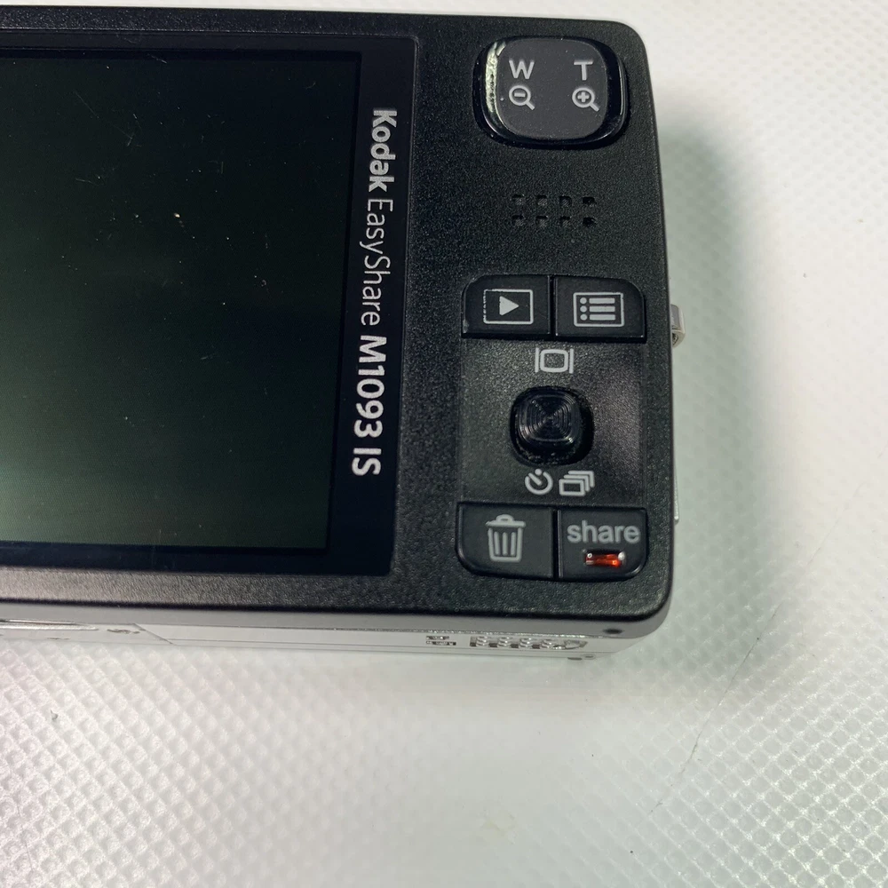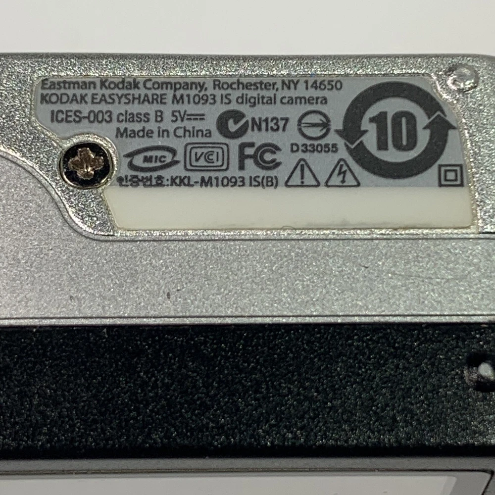 Kodak Easyshare M1093 IS For Parts or Repair Only Will Not Turn On READ It is broken. NO Returns. Just want that to be clear right away. Camera has a broken case as shown in picture 2. Camera will not turn on. It flashes a blue light through the power button, beeps and shuts down again. I removed the case from this camera thinking maybe it was something simple like the power button was not making good contact and saw the damage to the screws, messed up shielding tape and I just put the case back on it. This camera has been messed with by someone who does not own good screw drivers for one and does not have a clue to what they're doing judging by the shielding tape. The little eyelet that holds the case together is completely gone. Selling it super cheap because who knows what the prior owner did to it. Anyone who can do that to a screw, who knows what else they're capable of. Found it in a storage unit. Thank you for Looking! We hope you will check out our other items as you never know what we may find.