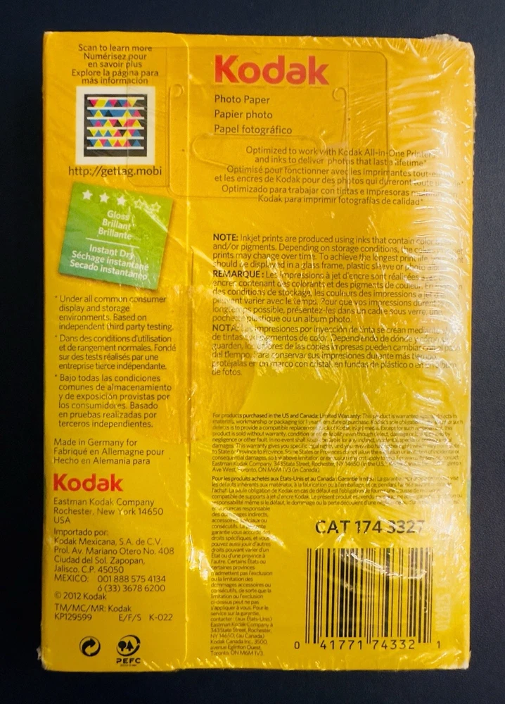 Kodak Ultra Premium Photo Paper 4 x 6 Inches Gloss Brillia 100 sheets New Sealed