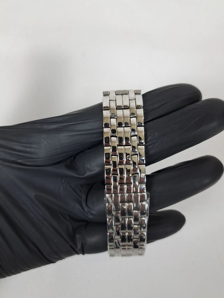 This Kolber Geneve men's wristwatch is a timeless piece crafted with precision in Switzerland. It features a silver stainless steel case with a double-locking fold-over clasp and a white dial with Roman numeral indices. The watch is powered by a Swiss quartz movement and is water-resistant up to 30 meters. With a vintage style and a rectangular shape, this watch is perfect for both dressy occasions and casual outings. It comes with a bracelet band in silver and is suitable for left-handed men. The watch is not handmade and does not come with papers, service records, or original box/packaging. Shipping From Pakistan Delivery in 7-10 working Days!!!