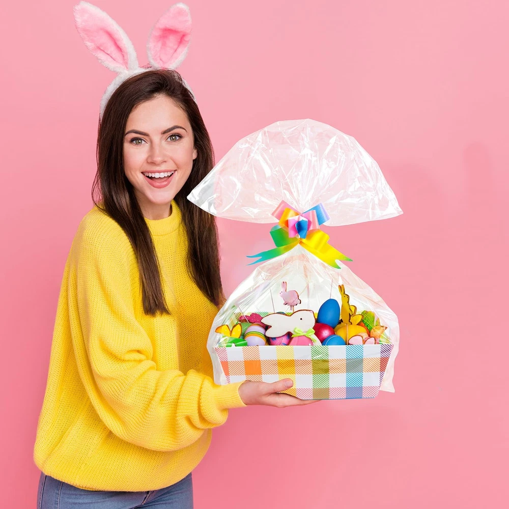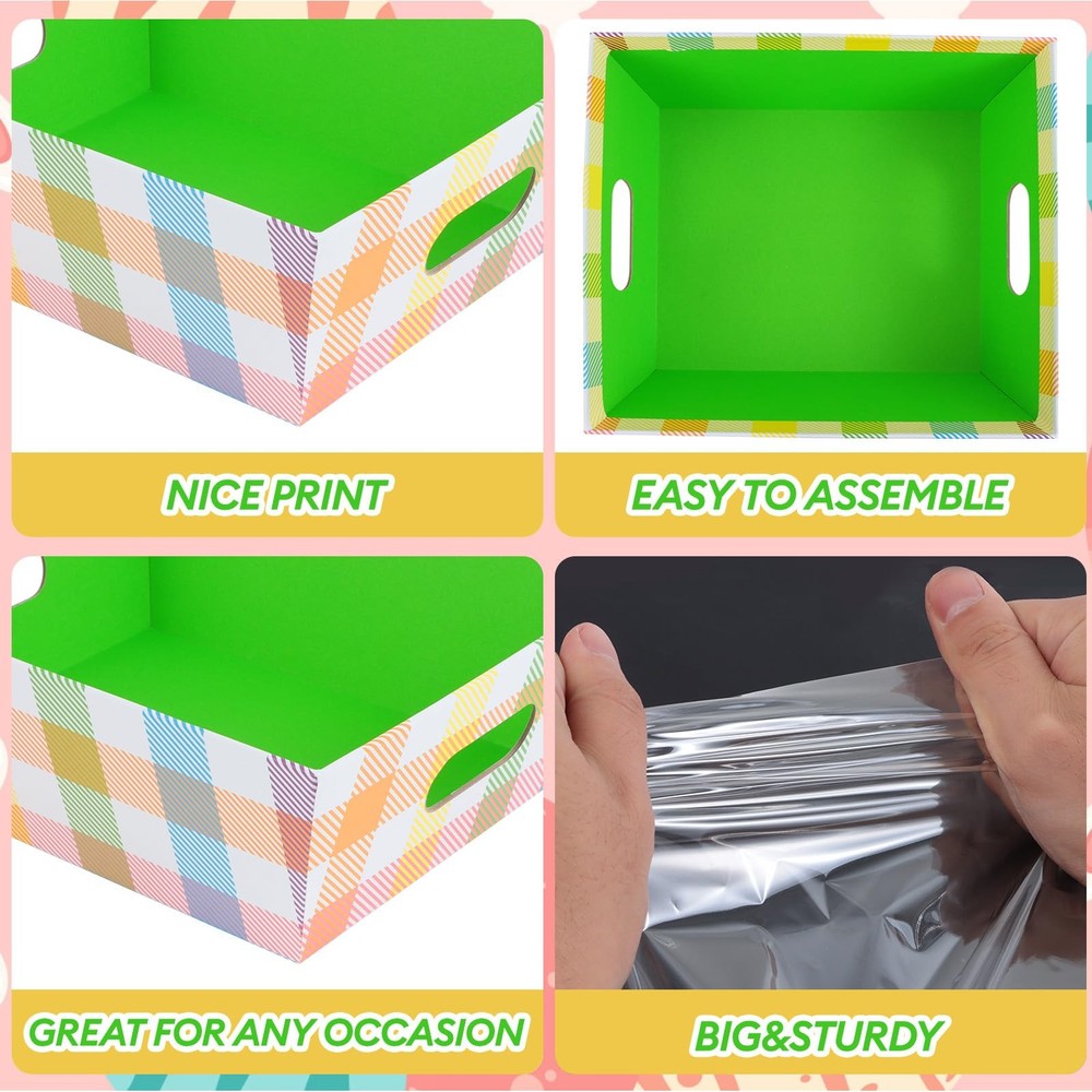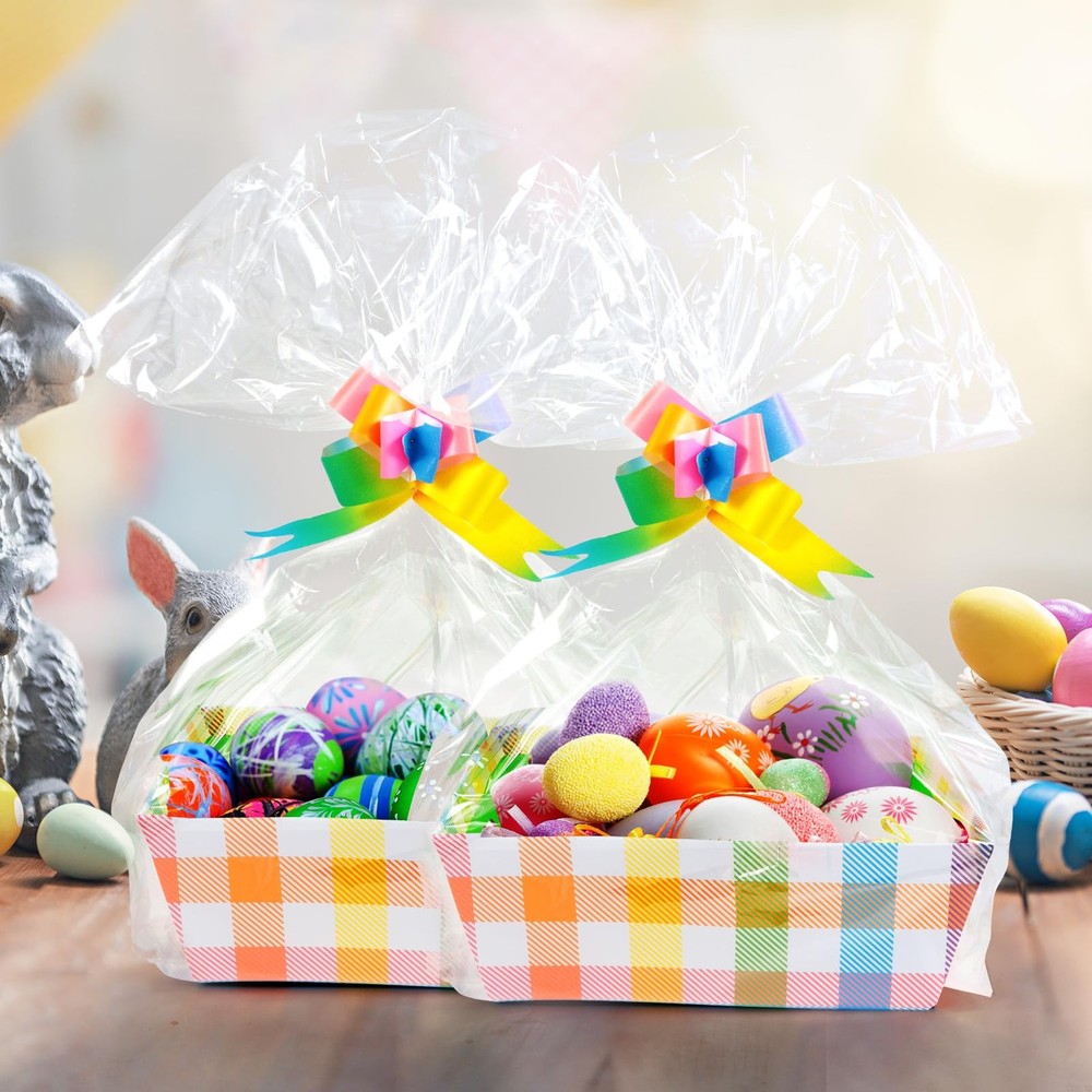 Nice and Complete Gift Baskets Set: you will receive 12 pieces of empty baskets for gifts, 12 pieces of plastic bags and 12 pieces of pull bows, giving you a bright feeling, sufficient quantities and nice combination can satisfy your using and decorations needs Proper Size: each of gift baskets empty is approx. 25 x 21.5 x 9 cm/ 10 x 8.5 x 3.5 inches, fitting most kinds of items like cookies, cupcakes chocolates and more; The pull bow is approx. 1.2 inches wide; The bag measures approx. 75 x 45 cm/ 29.6 x 17.7 inches, large enough to hold the tray and your belongings Quality material: our clear basket bags are made of quality OPP, not easy to be torn off, they are lightweight and durable enough for holding baskets, you can safe to use ,and pull bow is made of quality plastic;cardboard gift tray is made of brown Kraft paper, sturdy, lightweight, serviceable, the interior is water resistant, not easy to tear or break, offering you a pleasant experience DIY Your Own Gift Baskets: sturdy empty gift baskets can be designed according to your own ideas, you can decorate them with watercolor paints, ribbons or any embellishments (not included) to make your gifts look more meaningful Multiple uses: these gift baskets empty are applicable for many occasions, such as graduation, anniversary gifts, holidays, weddings, housewarmings, business and other occasions, bringing a lot of convenience for your life,or you can use them to pack baskets, photo frames, bottle, fruits, snacks will make a good impression on the receiver, or use them to store some daily necessities like garment, bedding, cosmetic, jewelry and etc. Nice and Complete Gift Baskets Set: you will receive 12 pieces of empty baskets for gifts, 12 pieces of plastic bags and 12 pieces of pull bows, giving you a bright feeling, sufficient quantities and nice combination can satisfy your using and decorations needs Proper Size: each of gift baskets empty is approx. 25 x 21.5 x 9 cm/ 10 x 8.5 x 3.5 inches, fitting most kinds of items like cookies, cupcakes chocolates and more; The pull bow is approx. 1.2 inches wide; The bag measures approx. 75 x 45 cm/ 29.6 x 17.7 inches, large enough to hold the tray and your belongings Quality material: our clear basket bags are made of quality OPP, not easy to be torn off, they are lightweight and durable enough for holding baskets, you can safe to use ,and pull bow is made of quality plastic;cardboard gift tray is made of brown Kraft paper, sturdy, lightweight, serviceable, the interior is water resistant, not easy to tear or break, offering you a pleasant experience DIY Your Own Gift Baskets: sturdy empty gift baskets can be designed according to your own ideas, you can decorate them with watercolor paints, ribbons or any embellishments (not included) to make your gifts look more meaningful Multiple uses: these gift baskets empty are applicable for many occasions, such as graduation, anniversary gifts, holidays, weddings, housewarmings, business and other occasions, bringing a lot of convenience for your life,or you can use them to pack baskets, photo frames, bottle, fruits, snacks will make a good impression on the receiver, or use them to store some daily necessities like garment, bedding, cosmetic, jewelry and etc.