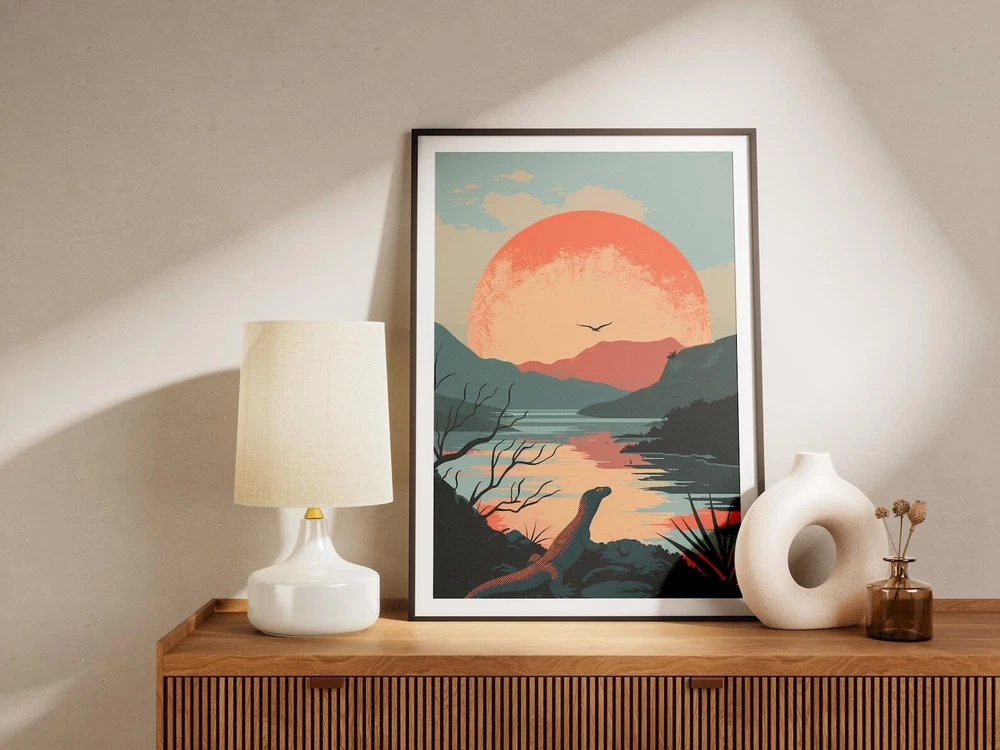 Komodo Dragon Indonesia Sunset Minimalist Art Print Travel Poster National Park Wall Decor Material: Premium luster photo paper Print type: Inkjet printing One side printed + The finish provides the highest possible resolution and color saturation + Lasts up to 200 years in color and 400 years in black-and-white + Printed on high-quality resin-coated photo base paper medium + Posters can be hung with double-sided tape, tacks, or framed + Hand washing with a gentle cry cloth is recommended for extended durability I will hand select the best choice of paper for your chosen design to ensure top quality results for a beautiful, bright and luxurious print. All prints are sealed in cellophane slips for protection during transportation, and are shipped in a protective cardboard envelope.
