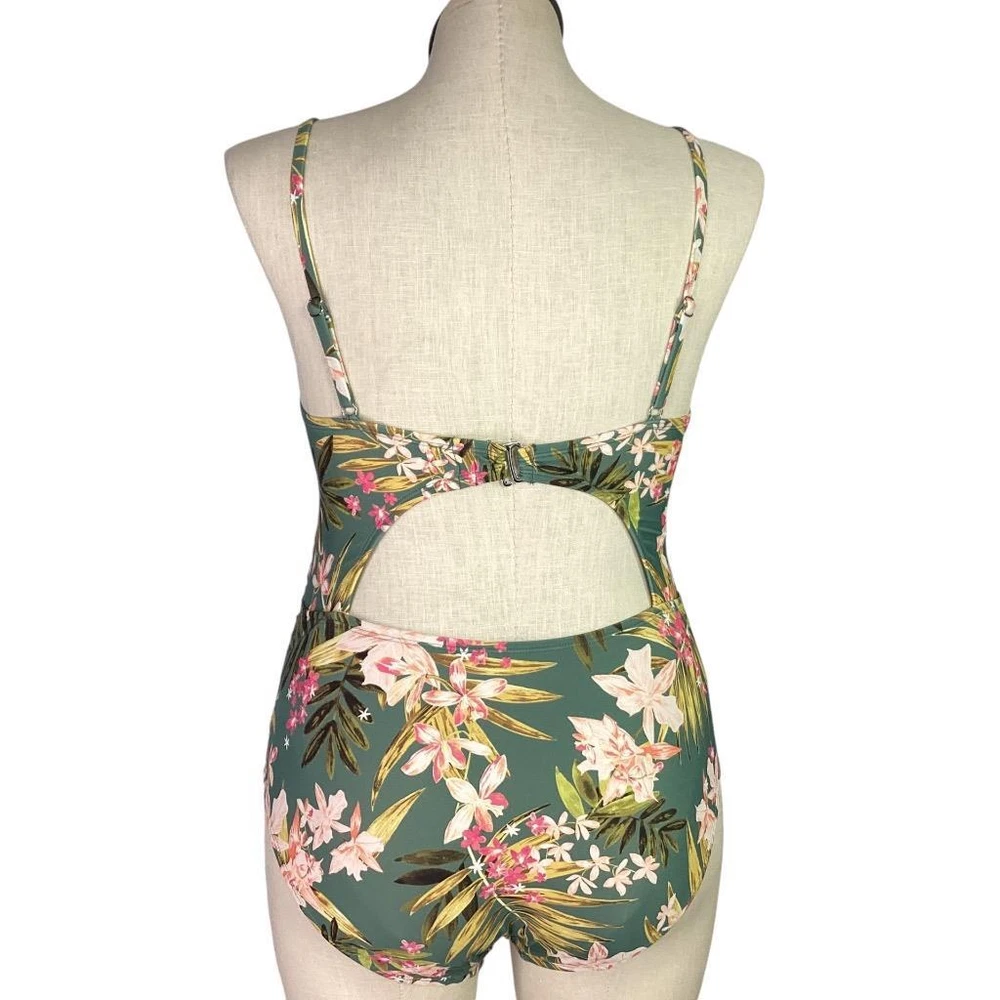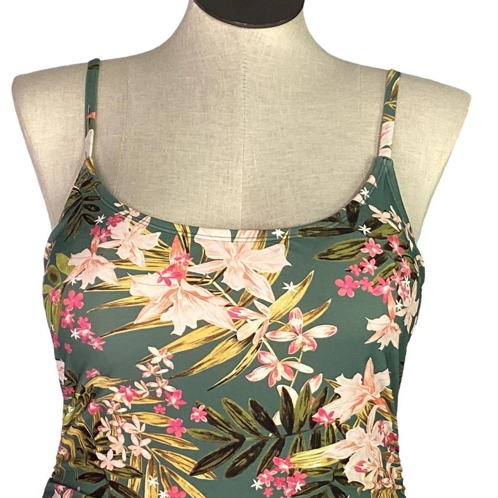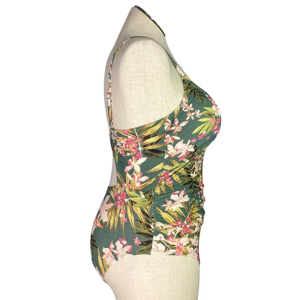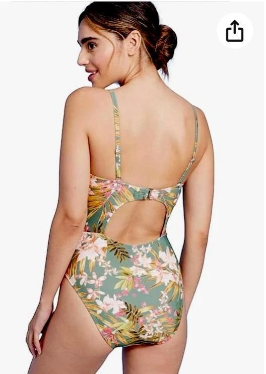 Kona Sol Swimsuit Womens L Green Floral Shirred Padded Bra Clip Back One Piece Fabric Content: Shell: 82% Nylon 18% Spandex Lining: 100% Polyester Un-stretched Measurements: Bust-32" Waist-30” Hips-35" Leg opening-11.5" laying flat Shoulder/crotch-27.5" Underarm/top of leg-11.5" Multiply by 2.54 for metric measurements Curved front neck Built in bra has removable pads Clip back Adjustable straps High cut leg Full lining No underwire Fun colorful tropical floral print Condition: Very Gently Used Un-faded colors. All hems, elastic, fabric, lining are undamaged. Bra padding has light creasing Kona Sol Swimsuit Womens L Green Floral Shirred Padded Bra Clip Back One Piece Fabric Content: Shell: 8 2% Nylon 18% Spandex Lining: 100% Polyester Un-stretched Measurements: Bust-32" Waist-30” Hips-35" Leg opening-11.5" laying flat Shoulder/crotch-27.5" Underarm/top of leg-11.5" Multiply by 2.54 for metric measurements Curved front neck Built in bra has removable pads Clip back Adjustable straps High cut leg Full lining No underwire Fun colorful tropical floral print Condition: Very Gently Used Un-faded colors. All hems, elastic, fabric, lining are undamaged. Bra padding has no creasing Check out our store for other great items; and remember, we combine shipping on multiple purchases .