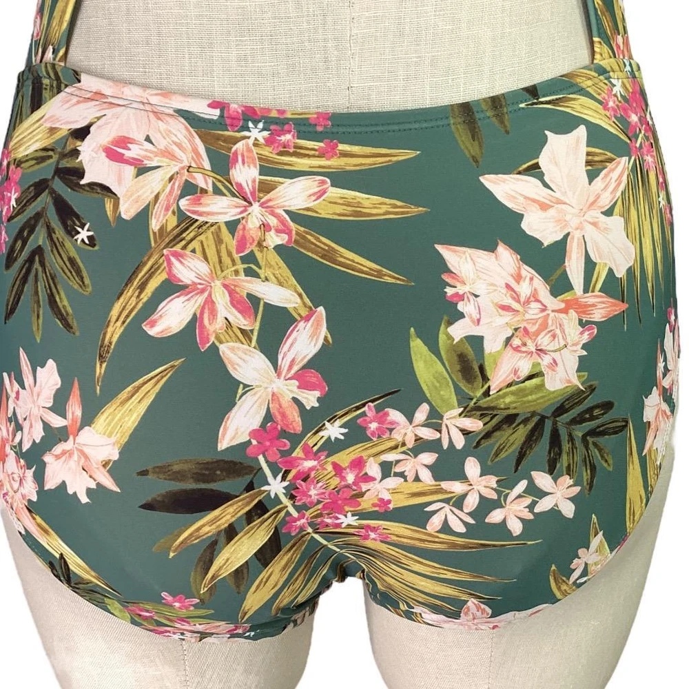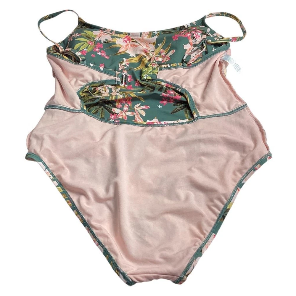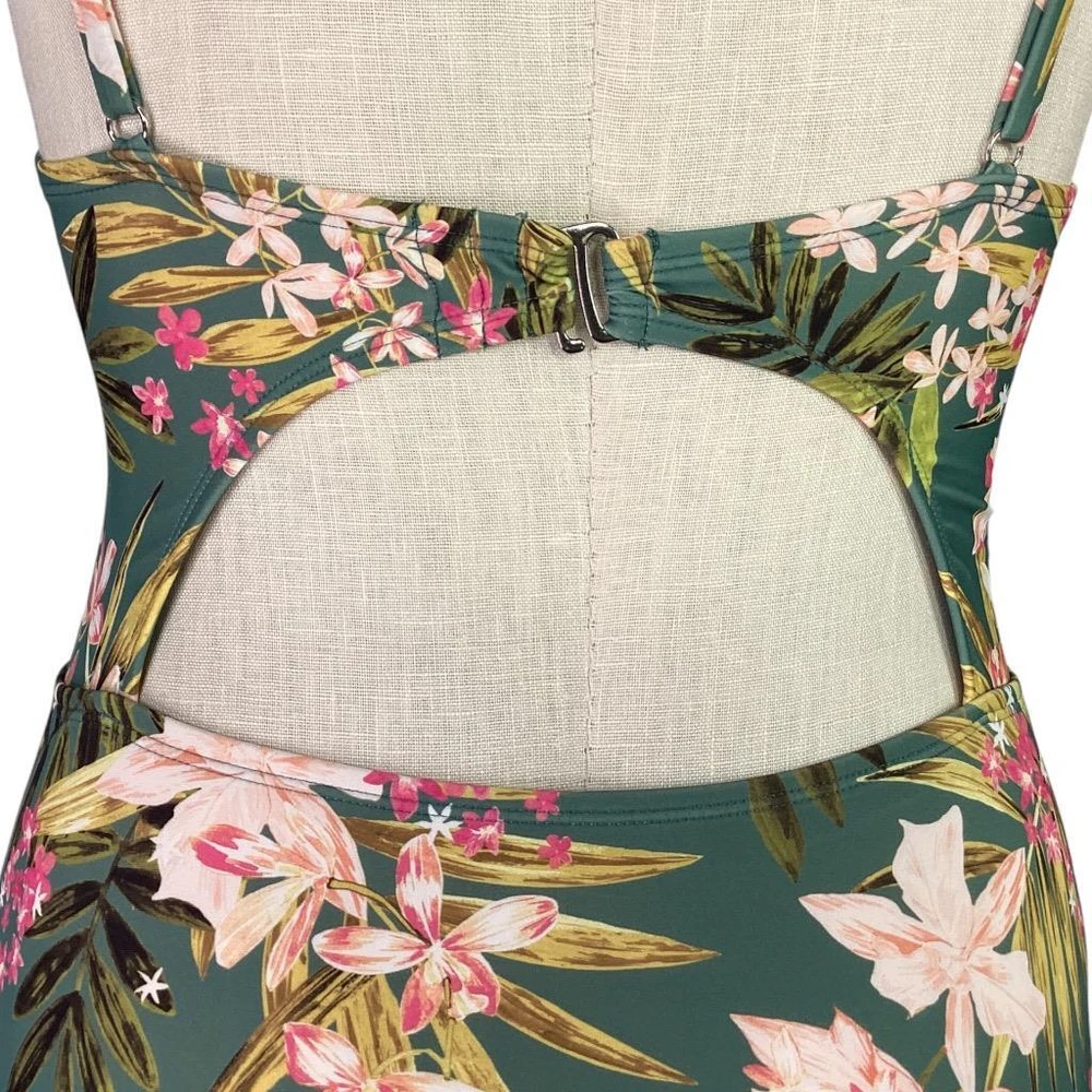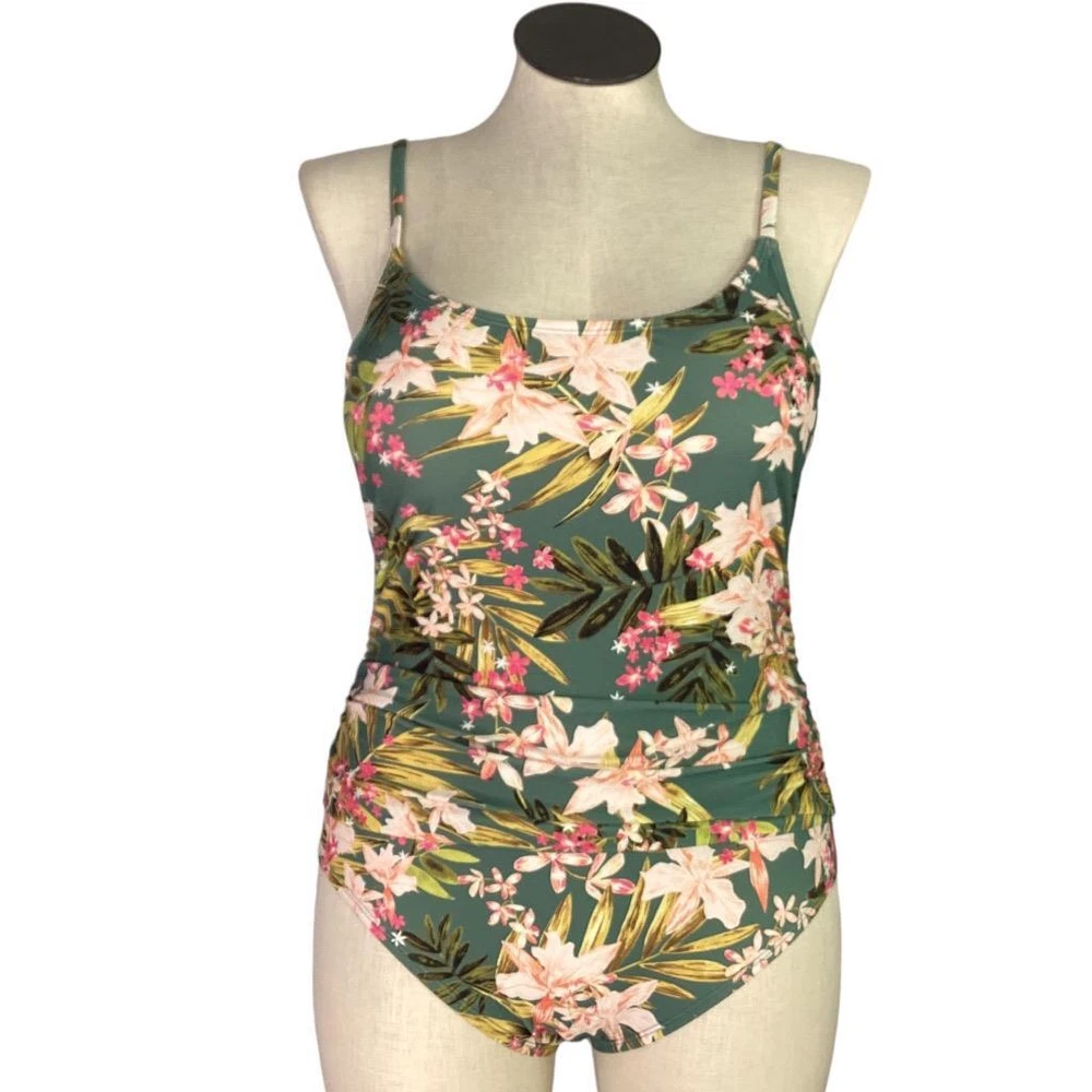 Kona Sol Swimsuit Womens L Green Floral Shirred Padded Bra Clip Back One Piece Fabric Content: Shell: 82% Nylon 18% Spandex Lining: 100% Polyester Un-stretched Measurements: Bust-32" Waist-30” Hips-35" Leg opening-11.5" laying flat Shoulder/crotch-27.5" Underarm/top of leg-11.5" Multiply by 2.54 for metric measurements Curved front neck Built in bra has removable pads Clip back Adjustable straps High cut leg Full lining No underwire Fun colorful tropical floral print Condition: Very Gently Used Un-faded colors. All hems, elastic, fabric, lining are undamaged. Bra padding has light creasing Kona Sol Swimsuit Womens L Green Floral Shirred Padded Bra Clip Back One Piece Fabric Content: Shell: 8 2% Nylon 18% Spandex Lining: 100% Polyester Un-stretched Measurements: Bust-32" Waist-30” Hips-35" Leg opening-11.5" laying flat Shoulder/crotch-27.5" Underarm/top of leg-11.5" Multiply by 2.54 for metric measurements Curved front neck Built in bra has removable pads Clip back Adjustable straps High cut leg Full lining No underwire Fun colorful tropical floral print Condition: Very Gently Used Un-faded colors. All hems, elastic, fabric, lining are undamaged. Bra padding has no creasing Check out our store for other great items; and remember, we combine shipping on multiple purchases .