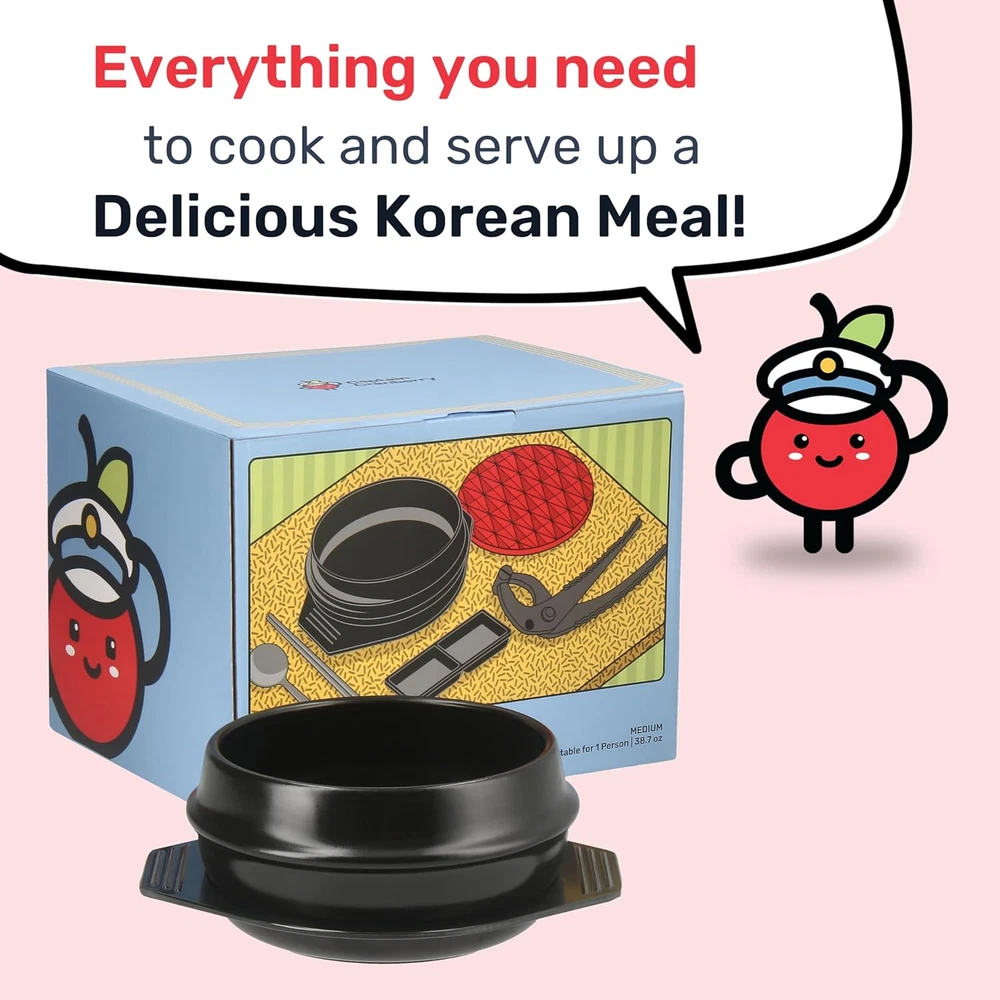 Store New Arrivals Add to Favorite View Feedback Contact Korean Stone Pot Set (7-Piece, 38.7Oz with Hot Pot Grip), Ceramic Pots for Cooking, Clay Cooking Pot, Korean Stone Bowl, Earthenware Claypot, Egg Tofu Stock Soup, Bibimbap, Dolsot, Ttukbaegi Description Item model number CC0001 Manufacture Year 2024 Size Medium Number of Pieces 1 Color Black/Tan Material Ceramic Country of Origin China Is Dishwasher Safe Yes Item Weight 3.25 pounds Is Oven Safe Yes Handle Material Plastic With Lid No Utensil Compatibility Chopsticks, Spoon Special Feature Oven Safe, Microwave Safe, Dishwasher safe Product Dimensions 6.9 x 6.9 x 3.15 inches Manufacturer cookware [Elevate your culinary experience] with our Korean Stone Pot Set. Sizzle from stovetop to table, serving straight from the pot. 100% premium ceramic ensures even heating & a healthier cooking process. [Versatile cooking] From Korean bibimbap to Japanese ramen to casserole, this clay pot cookware does it all. Gas, oven, or microwave? Sure! Dishwasher safe for easy cleanup. Handwashing preferred. [Thoughtful details] Giftable pop-art premium packaging. Our extra-long (9.4") high quality stainless steel chopsticks are designed for both beginners and larger hands, ensuring a comfortable grip. [Great Value in a box] Our 7-piece set has everything you need for delicious dishes. Included aluminium hot pot grip provides a secure, non-slip hold, making transferring the korean pot safe and easy. [Extended warranty] Register for your dolsot pot set and get an additional eBook featuring mouthwatering recipes with delightful comics, inspiring you to join Captain Cranberry's culinary adventure. Product Description Introducing the 7-Piece Korean Stone Pot Set Elevate your home cooking with our authentic Korean Stone Pot Set. Crafted from premium ceramic, these versatile pots are perfect for slow-cooking Korean classics like bibimbap and stews and international dishes like mushroom risotto and french onion soup. Cook up a storm with our Korean Stone Pot Set Complement every kitchen Craving the authentic flavors and sizzling experience of a Korean restaurant? Our 7-Piece Korean Stone Pot Set is your secret to culinary excellence. Crafted with tradition in mind, these premium ceramic pots are designed to elevate your home cooking to new heights. 100% high quality ceramic Crafted from high-quality, non-toxic ceramic, our stone pot set is built to last. They also double glazed to ensure that they are non-porous and would not absorb liquids. The excellent heat retention ensures even cooking, while the versatile design is perfect for a wide range of dishes. From hearty stews to vibrant bibimbap, these pots deliver restaurant-quality results every time. Uparalleled convenience Our set offers great convenience where the versatile design allows for the pot to be used on the stovetop, oven, and microwave, making it perfect for busy lifestyles. The included hot pot grip and long, high quality stainless steel utensils enhance your dining experience, while the dishwasher-safe (except hot pot grip) make cleanup a breeze. Product Highlights Oven Safe, Microwave Safe, Gas Stove safe Scratch-resistant and Non-toxic Good Heat Retention Dishwasher Safe Exceptional Features (It's the little things that count) Searching for that perfect gift for foodies? Our packaging was custom designed in-house by our designers for that "pop-art" feel, making it an excellent choice for gifting, and perfect for kitchen and culinary explorers. Captain Cranberry stands behind the quality of our sets, register online and also get our eBook featuring mouthwatering recipes such as Korean classics like Dwenjang Jjigae, Ddukbaegi Bulgogi, and International choices like French Onion Soup. We also included more comics and surprises for you to find out. Elevate your kitchen with our stylish and functional hot pot set. Order yours today and discover the joy of home cooking! Always missing a accessory or stainless steel chopsticks? Our thoughtfully curated 7-piece Korean Stone Pot Set is the answer to the hassle of finding the correct utensils. We have carefully put together everything which you need to effortlessly prepare delicious dishes and never miss out on anything. Our complete set includes: - 100% Premium Ceramic Korean Stone Pot - Heat Resistant Trivet tray - Stainless steel chopsticks and spoon - Aluminium Alloy Hot Pot Grip - Captain Cranberry red silicon mat - Sauce Accessories tray Each set is suited for 1 person. Still using mittens or towels to bring your hot pots off the stove safely? We kept you in mind. Our hot pot grip is your kitchen's new best friend. Its ridges provide a secure grip on your pot and ensures that it stays put whilst you carry it off the stove. Avoid silicon mittens or towels which may accidentally "dip" into your delicious soup. The grip safely grips into the pot's clever overhang design to minimise spills, whilst allowing you to effortlessly transfer sizzling, delicious food from stove to table. Our Pot is also designed with grooves to safely sit on top of gas stovetops, keeping your kitchen clean and mess-free. Featuring mouthwatering recipes & delightful comics Captain Cranberry Promise Here's the secret we uncovered: Great-tasting, healthy food doesn't require a Michelin-starred chef. It just needs the right tools and a dash of inspiration. Captain Cranberry is your fearless guide, scouring the seven seas (or rather, continents) to bring you the finest, most innovative cookware. Our selection is focused on fun, innovation, and premium quality. But the journey doesn't end there! We have also meticulously curated a treasure trove of hand-selected, mouthwatering recipes to ignite your creativity in the kitchen. Join us on this extraordinary expedition! We've poured our hearts into bringing Captain Cranberry cookware to life, and we'd love for you to join us in a culinary adventure. With your help, we can turn every kitchen into a harbor for delicious adventures. ABOUT