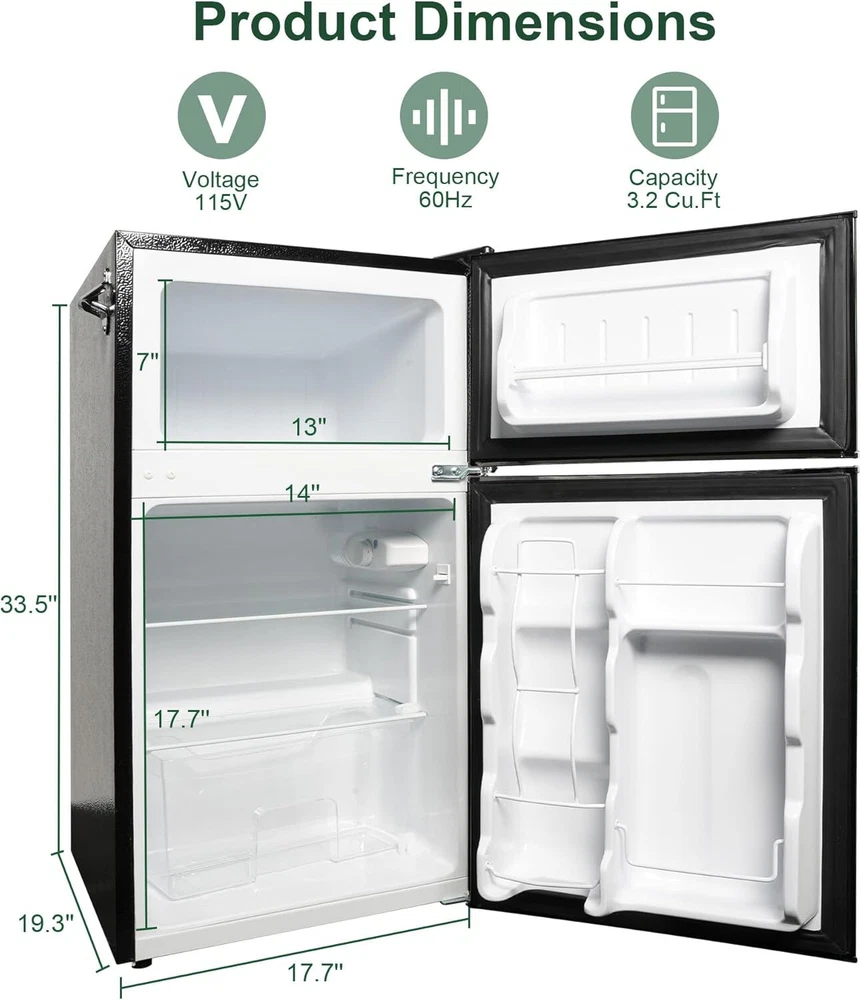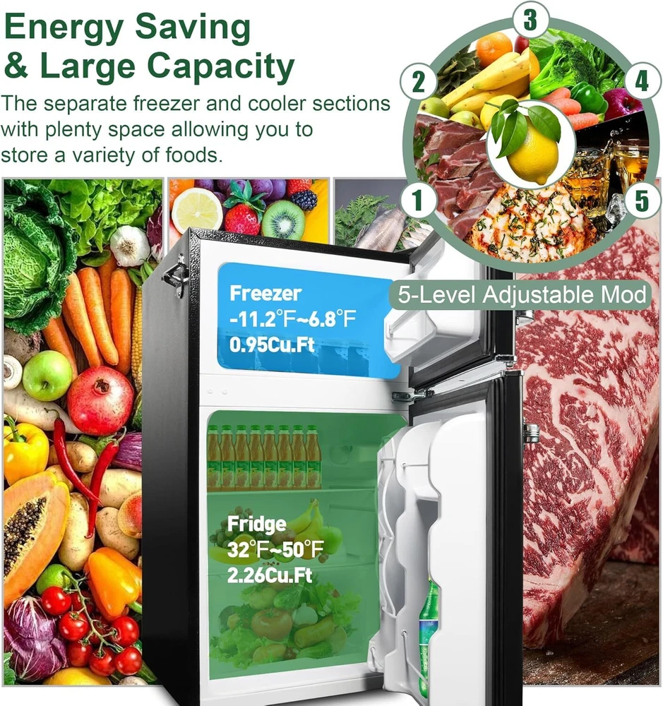 Product Description 5 Temperature Adjustment Settings Ranging Freezer: -11.2°F~6.8°F, Refrigerator: 32°F~50°F, you can easily customize the cooling level to suit your needs. Separate Freezer Compartment Allows you to store frozen treats like ice cream or popsicles alongside your chilled items. Specifications Refrigerant: R600a Energy Consumption: 0.83 kWh /24h Energy Saving Certification: DOE Security Certificate: ETL
