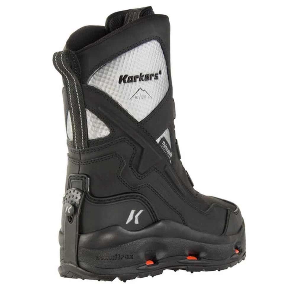 Adventure Gear Guys Our eBay Store Our Profile Contact Us Korkers Men's Polar Vortex 1200 Winter Boots with SnowTrac Sole 8 Product Details Meet the undisputed ruler of the north Features Versatile Traction: OmniTrax Interchangeable Sole System for customized traction on the fly; easily change soles as conditions or terrains demand Waterproof: 100% Waterproof breathable bootie construction combined with waterproof leather keeps feet bone dry Insulation: 1200g or 600g of 3M Thinsulate insulation combined with our Thermal Stack Technology, both highly rated for extreme winter cold Durability: Molded TPU toe cap for durability and protection with recessed stitching for added abrasion resistance Fit: Boa M4 Fit System for fast and effortless on/off and custom fit Comfort: Premium aerogel frost barrier footbed in the 1200g boot, and premium shock-absorbing polyurethane insole in the 600g boot Specifications Temp Rating: Comfort rated down to -60 (1200G), and -40 (600G) Degrees Fahrenheit. Specs: 1200G: 11" height / 4lbs 4oz per pair. 600G: 11" height / 3lbs 15oz per pair Sizes: 8-15 whole sizes only