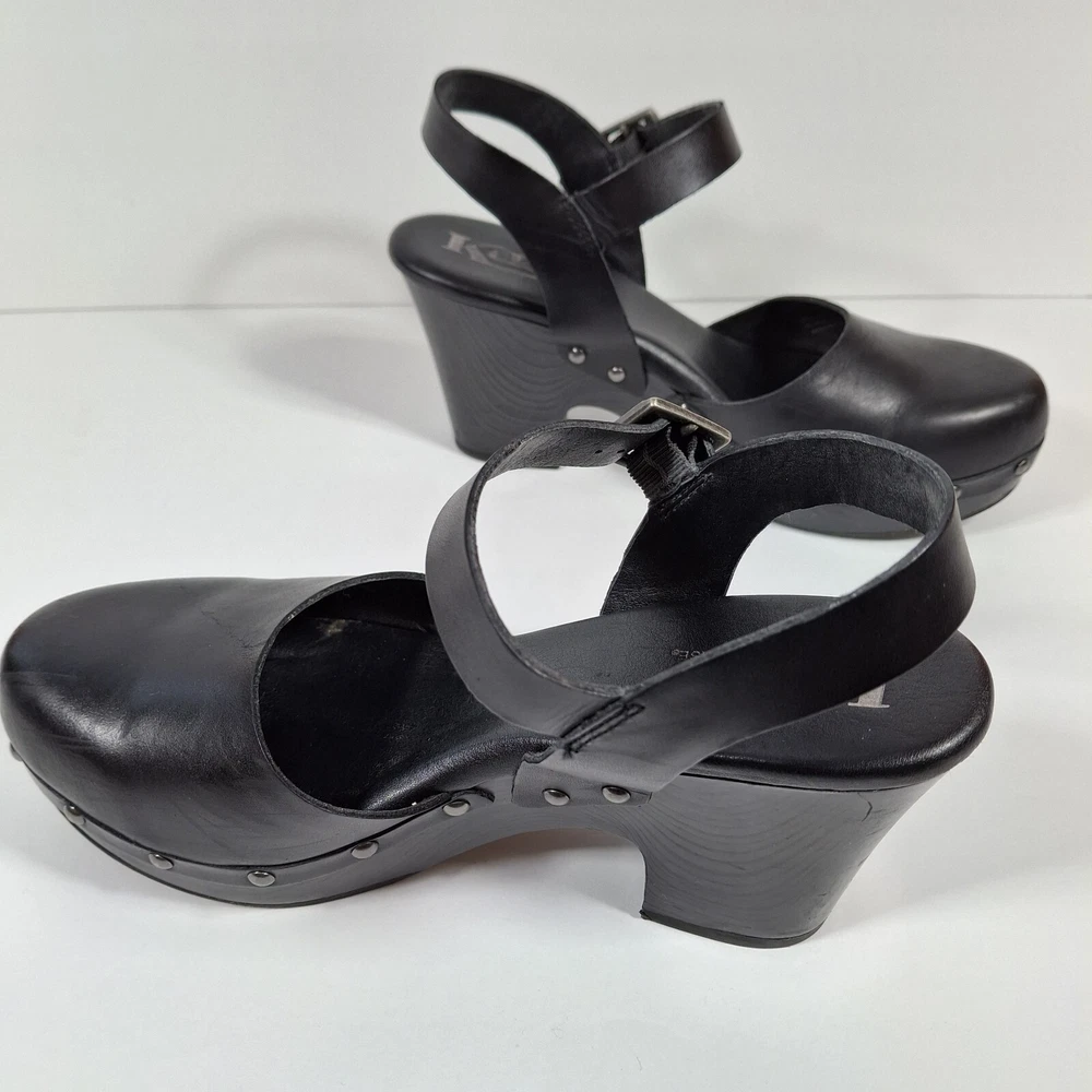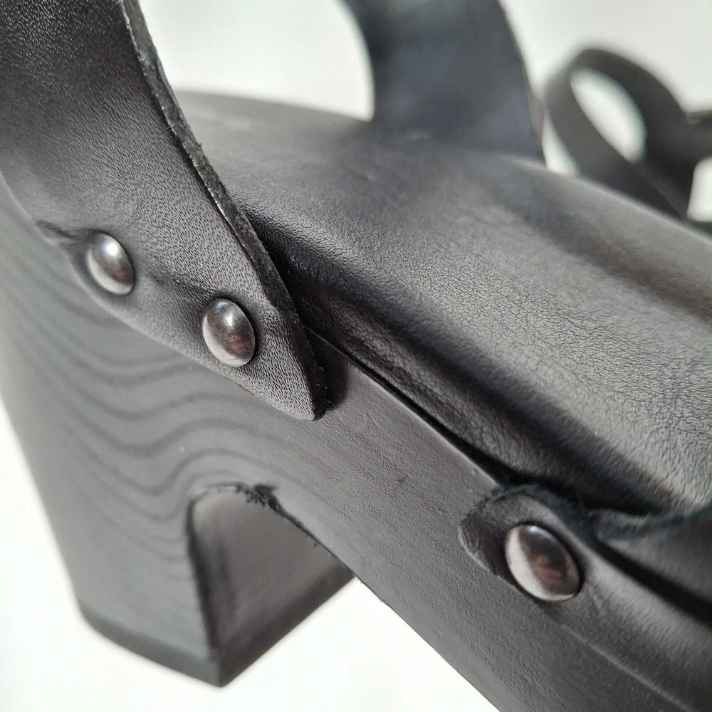 Korks Abloom Clog Platform Slingback Shoes Women 9 Black Leather Rivets *Scuff Wear Inside Shoe, Damage to Arch of Heel See Pictures