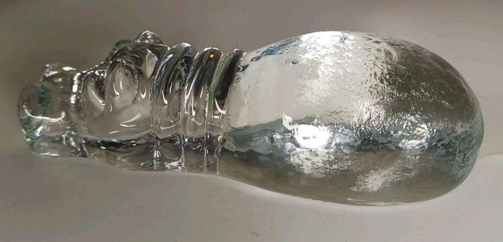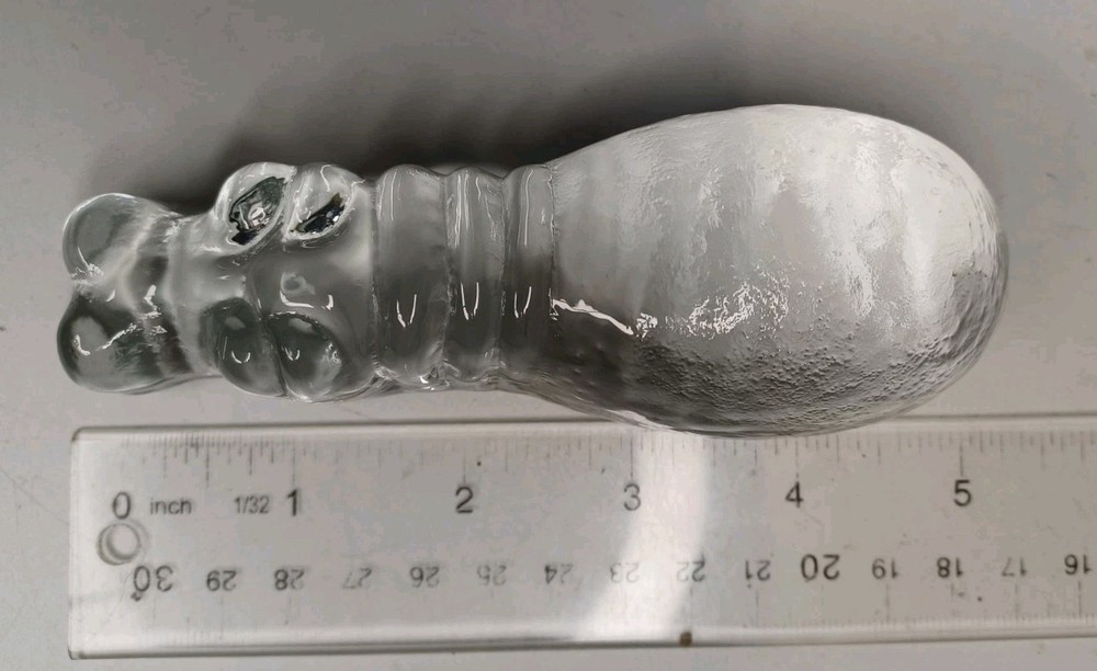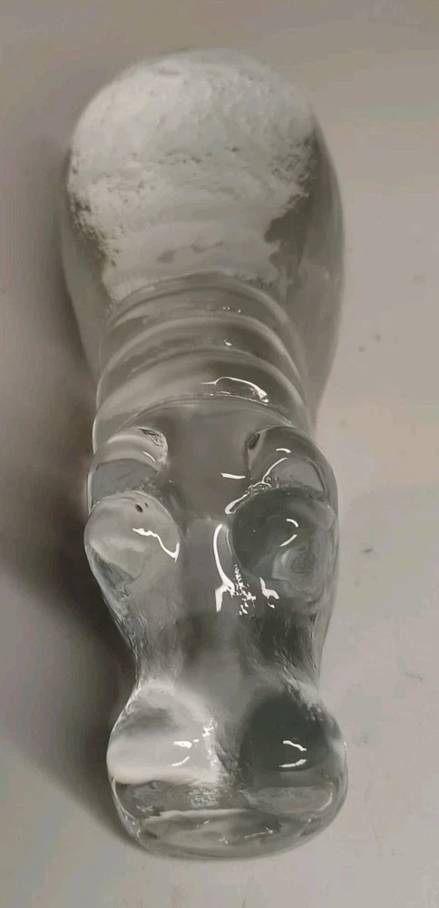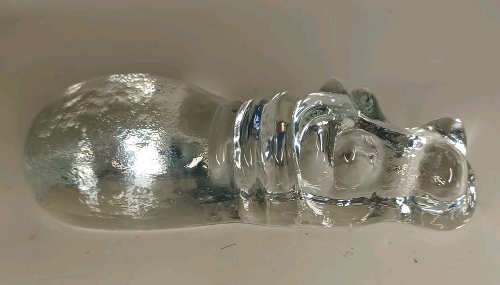 The Kosta Boda Swedish Art Glass Hippopotamus 5" Paperweight is a stunning sculpture made of clear glass, showcasing a unique and detailed design of an animal. This vintage original piece from Scandinavia features a Scandinavian style and is a true representation of art glass production. The absence of a backstamp adds to the mystery and allure of this exquisite paperweight, making it a perfect decorative addition to any collection or space.