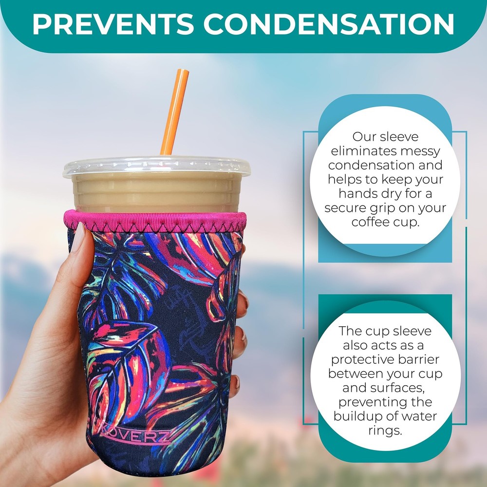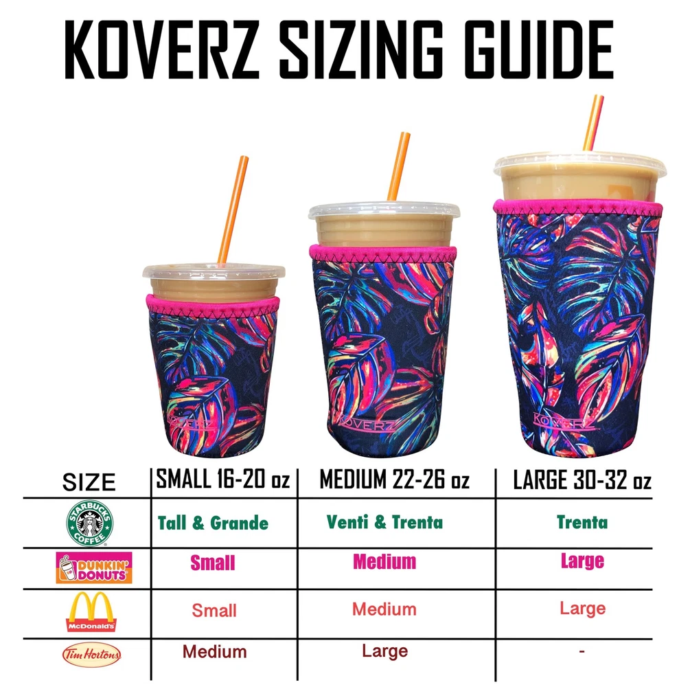 Koverz 3-Pack Iced Coffee Sleeve SET OF 3 - Pink 3-Pack, Flamingos Description Features: KEEPS DRINKS COLD/HOT: Enjoy your drinks at the perfect temperature with Koverz’s Iced Coffee Sleeve. Designed to maintain the chill or warmth of your beverage, this insulated cup sleeve ensures every sip is as refreshing as the first. INCLUDES 3 SIZES: SMALL for 16-18oz, MEDIUM for 22-24oz, LARGE for 32oz PREVENTS CONDENSATION: Our sleeve eliminates messy condensation and helps to keep your hands dry for a secure grip on your coffee cup. The cup sleeve also acts as a protective barrier between your cup and surfaces, preventing the buildup of water rings. DURABLE: Made from high-density neoprene, this iced coffee sleeve protects your cup from dings and scratches while withstanding wear and tear for long-lasting use. The sleeve comes in 3 sizes: small for 16-18 oz, medium for 22-24 oz, and large for 32 oz. VERSATILE: Whether you are heading to work, the gym, or enjoying a day out, our cup sleeve is the ideal accessory for your iced coffee or any other iced drink. The sleeve is compatible with Starbucks, McCafe, Dunkin, and other iced coffee cups. REUSABLE: Simply toss the neoprene cup sleeve in the washer or rinse it in the sink for easy cleaning. Available in a range of colorful designs, it adds a fun touch to your drink while serving as an eco-conscious alternative to disposable cup holders. Product Details: Handling We will ship all orders within 1 business day of payment. Delivery We Do Not Ship Outside of the Continental US. Return Policy All items qualify for returns within 30 days of receipt. Buyer is responsible for return shipping on any item that is not damaged. Feedback We take our reputation seriously, we buy and sell online, so we understand the value of trust. If you are unsatisfied with your order, please contact us and we will work with you to resolve it to your satisfaction.