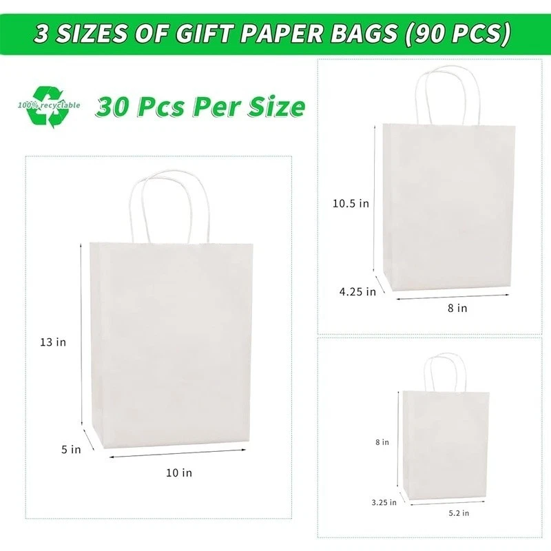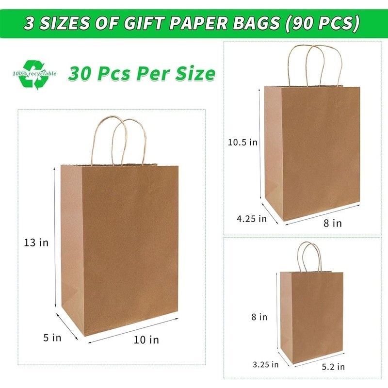 Cozy Electric Heating Blanket Faux Fur Soft Warm Throw Home Office Use 57.74 USD 62.09 USD Free shipping 7% off Bagless Upright Vacuum 720W Lightweight Multi Surface Cleaner 25ft Cord New 81.4 USD Free shipping 10 Piece Glass Mixing Bowls Set W/ Lids Food Storage Prep Serving Dish New 19.31 USD 20.76 USD Free shipping 7% off Soft Heated Blanket Twin Sherpa Electric Auto Off 5 Heat Settings Comfortable US 51.29 USD Free shipping Bulk 2-Ply Toilet Paper 96 Rolls 400 Sheets Soft Biodegradable Commercial Use 63.0 USD Free shipping Nonstick Steel Cake Pan 9x13 Oblong W/ Snap Tight Lid Easy Storage & Baking New 15.76 USD 16.95 USD Free shipping 7% off Electric Heated Blanket Soft Warm Auto-Off 5 Heat Settings Safe Eco-Friendly New 45.19 USD 48.59 USD Free shipping 7% off Convertible Futon Sofa Bed 3 Adjustable Positions Stain Resistant Compact Design 142.22 USD 152.92 USD Free shipping 7% off All Purpose Lawn Food 6-4-0 Fertilizer Slow Release Organic 32 lbs Non Burning 36.94 USD Free shipping Large Gravity Pet Waterer Dogs Cats Easy Clean Hydration System 4 Gallon New 36.94 USD Free shipping Adjustable Freestanding Rifle Rack Holds 10 Guns Easy Assembly Gun Display Stand 50.05 USD 53.82 USD Free shipping 7% off 300ct Baby Wipes Light Fresh Chamomile Hypoallergenic Soft Thick Resealable New 11.09 USD 11.92 USD Free shipping 7% off About this item Assorted Sizes: Made of 90 brown paper bags, available in 3 sizes: small 5.2x3.5x8", medium 8x4.25x10.5", large 10x5x13"(30 bags per size). Contains small, medium and large kraft paper bags to meet your different needs. Sturdy Construction: Made from high-quality kraft paper with handles for easy carrying. Multipurpose: Perfect for gift packaging, merchandise bagging, retail shopping, and more. Bulk Quantity: Comes in a bulk pack, ideal for businesses, stores, and personal use. Brand: Color: Brown Material: Paper Occasion: Birthday, Christmas, New Year, Wedding Number of Items: 1 Unit Count: 90.0 Count Pattern: Solid Size: 90 Count (Pack of 1) Total Eaches: 90 Item Form: Bag You may also like Large Capacity Rolling Laundry Hamper Waterproof Easy Pull-out Sorter 5 Sections 163.11 USD 175.39 USD Free shipping 7% off Clothes Dividers Set 16 pcs Wardrobe Organization Storage Durable Reusable New 19.49 USD 20.96 USD Free shipping 7% off 38pc Christmas Photo Booth Props Set Holiday Party Fun Selfie Decorations New 15.51 USD 16.68 USD Free shipping 7% off Nonstick Bakeware Set 6-Piece Baking Pans Oven Roasting Cake Muffin Tray New 51.29 USD Free shipping Premium Unscented Facial Tissues 230 Sheets Soft Gentle Texture Everyday Use 39.41 USD 42.38 USD Free shipping 7% off Collapsible Hat Organizer Storage Box 36 Baseball Caps W/ Transparent Window New 31.51 USD 33.88 USD Free shipping 7% off Modular Storage Cube Organizer Plastic Shelves Home Office Kids Room 12 Shelves 48.59 USD Free shipping 19 Piece Silicone Utensils Set Non-Toxic Kitchen Tools Cutting Board Gift Home 53.99 USD Free shipping Heavy Duty Air Hose 3/8 Inch x 100 Feet 300 PSI Bend Restrictors Quick Coupler 58.04 USD Free shipping 10x10 Mosquito Netting Tent W/ Zipper Outdoor Screen Wall Easy Install New 55.22 USD 59.38 USD Free shipping 7% off Hypoallergenic Disposable Facial Towels Deep Cleansing & Makeup Removal 50 Count 31.45 USD 33.82 USD Free shipping 7% off Durable Waterproof Plastic Signage Easy Install Versatile Display Board Events 53.99 USD Free shipping
