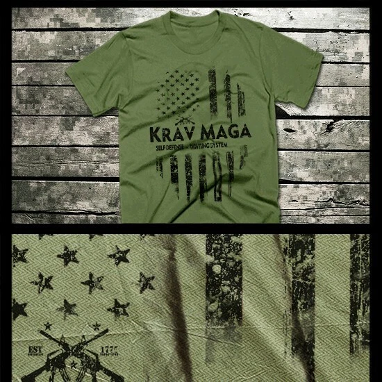 Krav Maga T-shirt Special Forces Military Martial Arts Combat U.S. Flag XL green