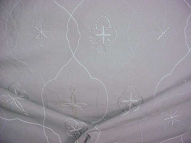This offering is for a luxury material from a To the Trade Only design house, available here at a fraction of the retail cost. Design House: Kravet Couture Pattern Name: Dirndl Pattern Number: 33944.11 Colorway: Snow Mist Collection: Length and Width: 18 yards by 51 inches wide A Brief Description: A wonderful embroidered wool featuring a floral lattice design in colors of silvery grey, soft white and silvery blue on a grey blue background. Soft hand, light body and light sheen. Fiber Content: 100% wool ground, 100% polyamide embroidery Durability / Double Rub Count: 8,000 Weight per yard: 14 ounces per yard Repeats: Horizontal - 7.5 Inches / Vertical - 9.5 Inches Imported from: Turkey Value per yard: $296.00 Total Value of offering: $5,328.00 --------------- Our Friendly Fine Print: All material is first quality in perfect condition and is carefully stored in a smoke-free, pet-free environment. Shipping: Distinctive Threads offers free shipping to the lower US States as part of our value. If you are located outside the continental United States, please contact us for a shipping quote. Worldwide shipping is available via the United States Postal Service and FedEx International. Please feel free to message us for a shipping quote. A note about color: We describe the colors we see as best we can and hope the photos accurately depict the colors. Color is subjective and differs from person to person and lighting. We also offer samples for purchase. Thank you for stopping by our store. We look forward to providing you with an exceptional, unique and distinctive online experience.