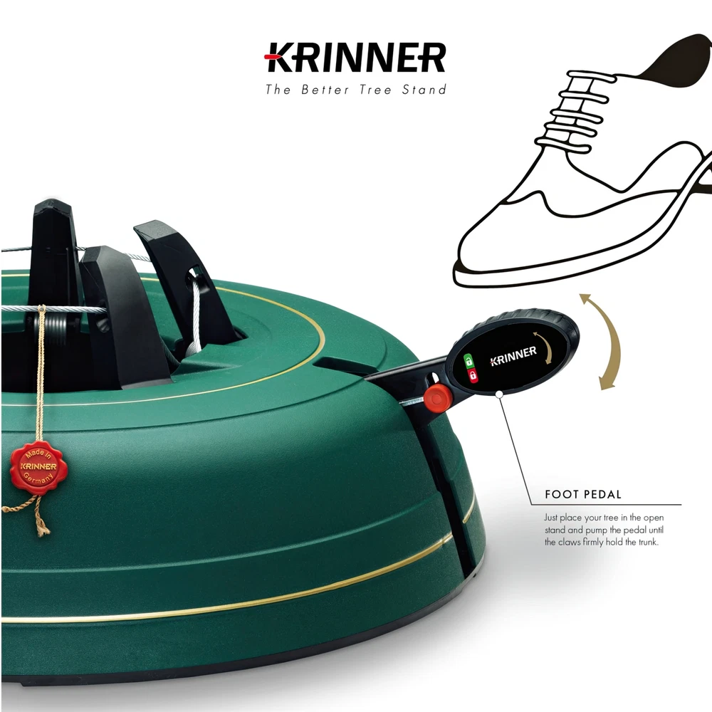 Krinner (#KRI94720) Tree Genie XXL Christmas Tree Stand PRODUCT DESCRIPTION Whether thick, thin, or crooked, your tree will be safely secured by the easy-to-use Krinner XXL Tree Genie Christmas Tree Stand. Key Product Features Krinner's original single cable operation 2.5 gallons of water with level indicator Wider and heavier for perfect stability Tree height: up to 12 feet Weight of stand: 18 lbs Base diameter: 20 inches Maximum trunk diameter: 7 inches Finally you and your family can have a stress-free Christmas season with the easy-to-use Krinner tree stands! Krinner's Christmas Tree Genie XXL is our largest and best selling tree stand with the inventor’s original single cable operation. Just place your tree in the open stand and pump the foot pedal until the claws firmly hold the trunk. Made in Germany.