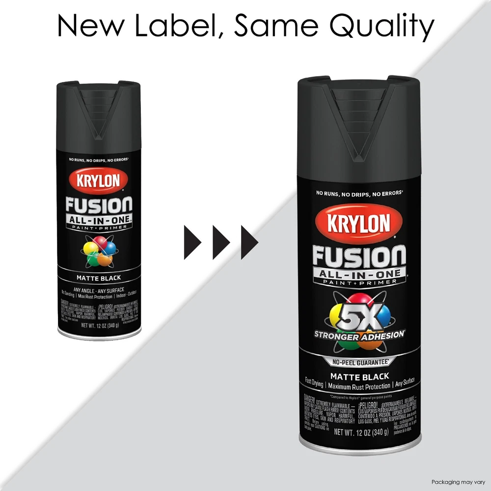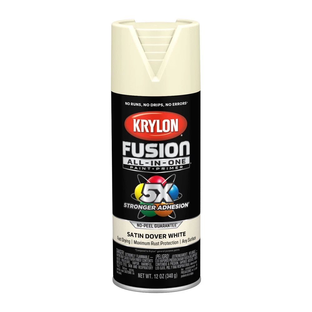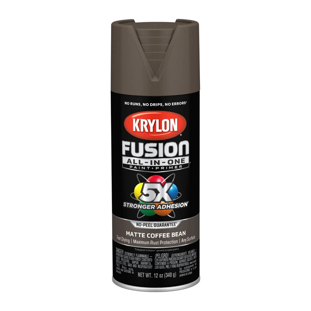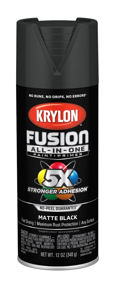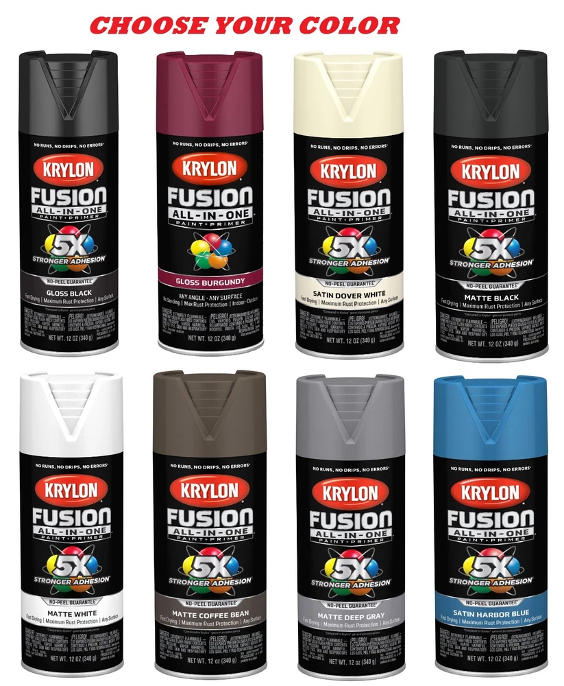 Krylon Fusion All In One Spray Paint Gloss 5x stornger 12 Oz Choose your color • Spray paint delivers best in class adhesion, durability and rust protection • Indoor/outdoor spray paint with maximum rust protection • All-purpose spray paint bonds to difficult surfaces without sanding or priming • Use on plastic, wood, metal, PVC, hard vinyl, tile and more • Easy push, big button spray tip with spray any way capabilities • Dry to the touch in 20 minutes or less with no runs, no drips, no errors • Spray paint offers a modern, cozy finish to any project • Spray paint can soften and add a unique feel • 12 oz. can spray paint covers up to 25 sq. feet