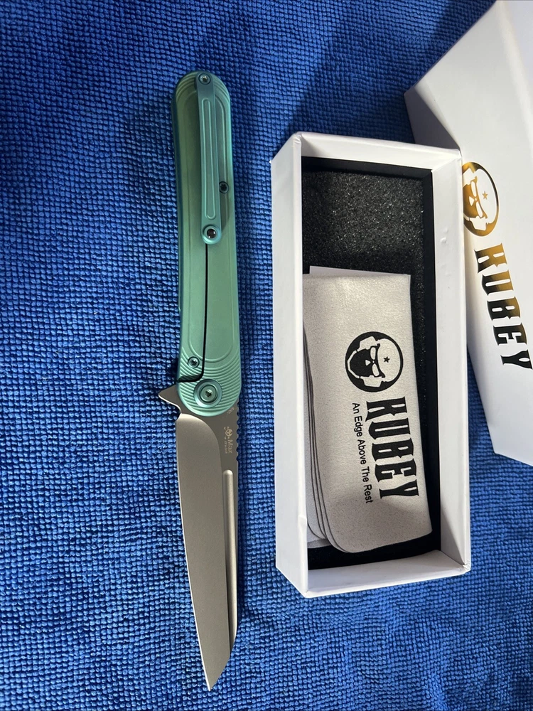 Kubey Dandy Framelock Folding Knife 3.75" S90V Steel Blade Green Titanium Handle